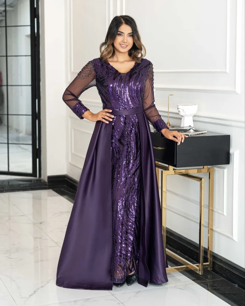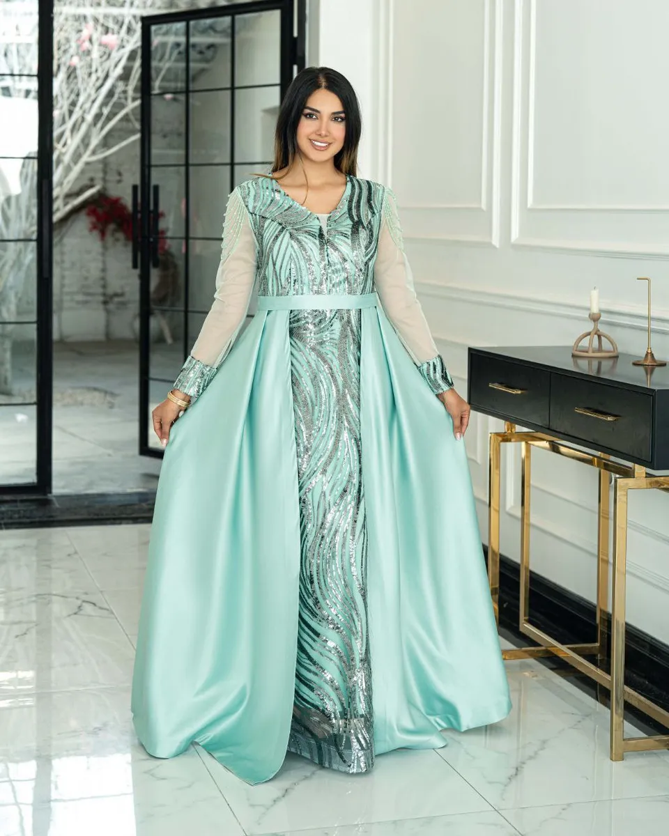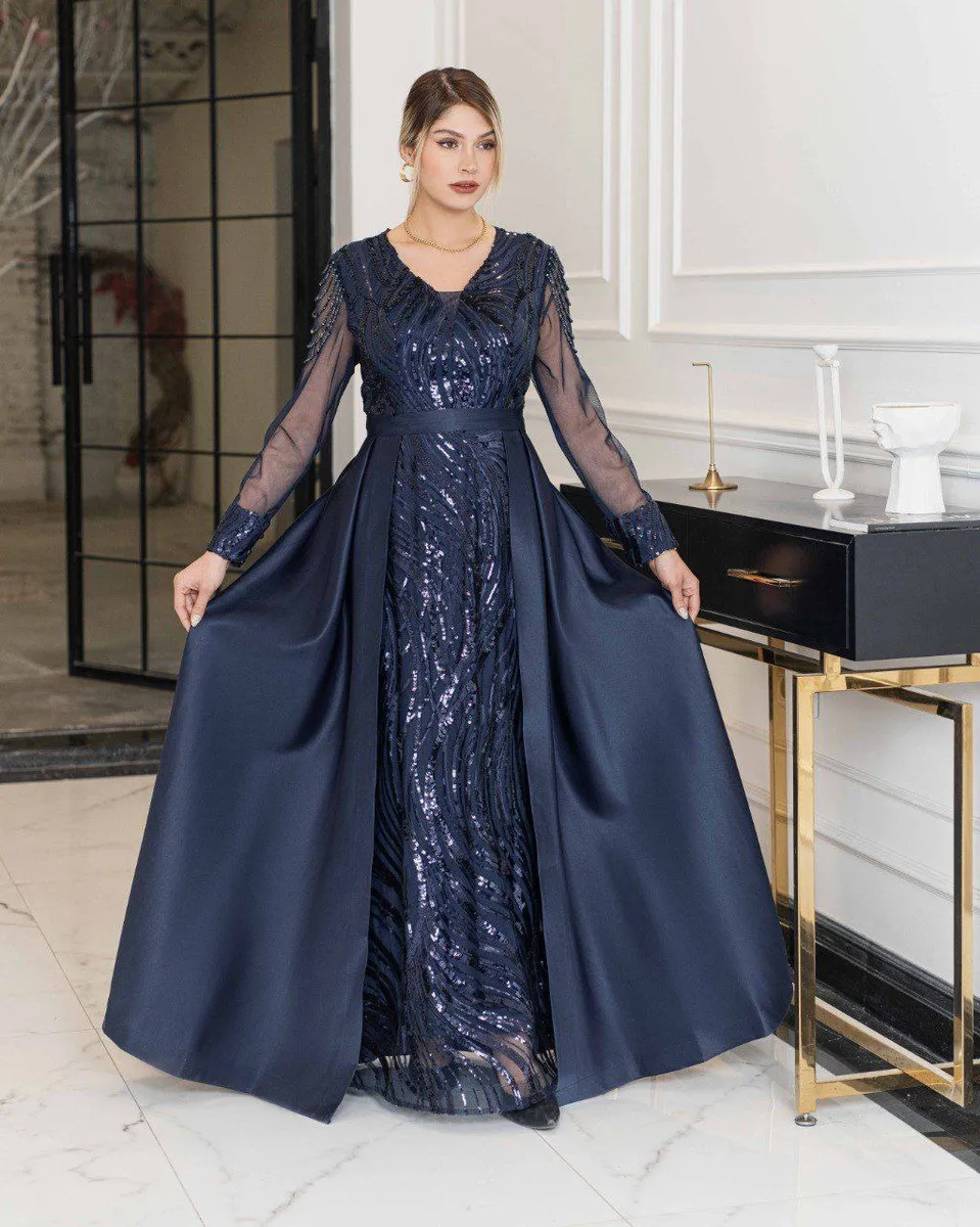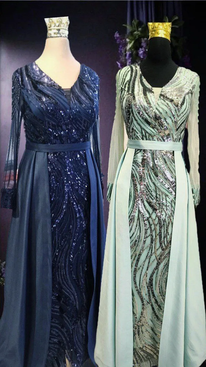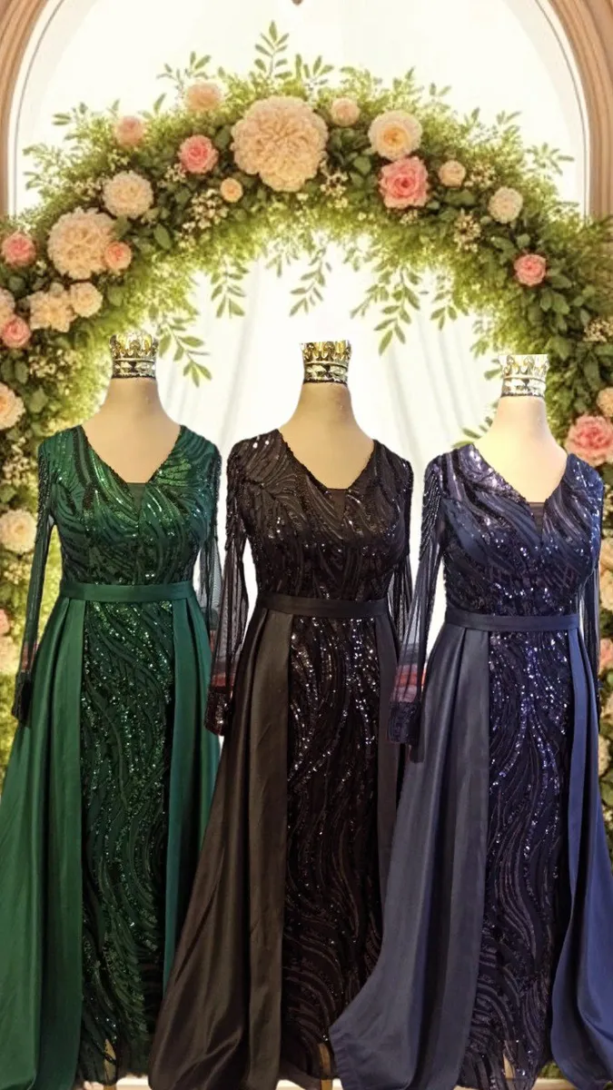 ترکیب پارچه لوکس: پولکهای تمامدوخت با درخشش خیرهکننده و ساتن آمریکایی با لطافت و ایستایی بینظیر، شما را در کانون توجه قرار میدهد.