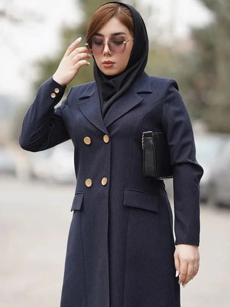 🔹 برش عصایی حرفهای: این برش خاص، مانتو را به زیبایی بر تن شما مینشاند و به آن ایستایی فرمال و شیکی میبخشد که برای محیط اداری ایدهآل است.