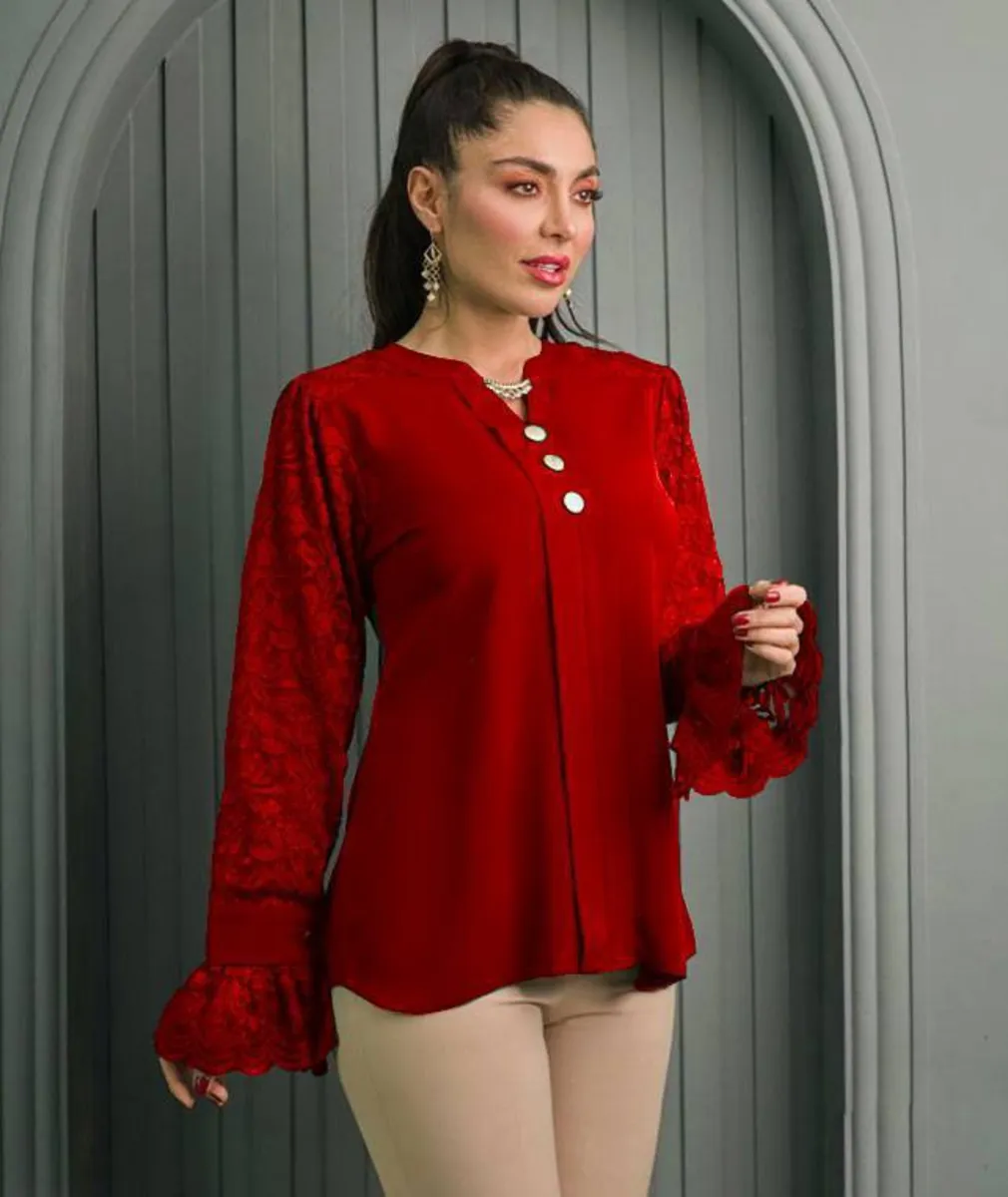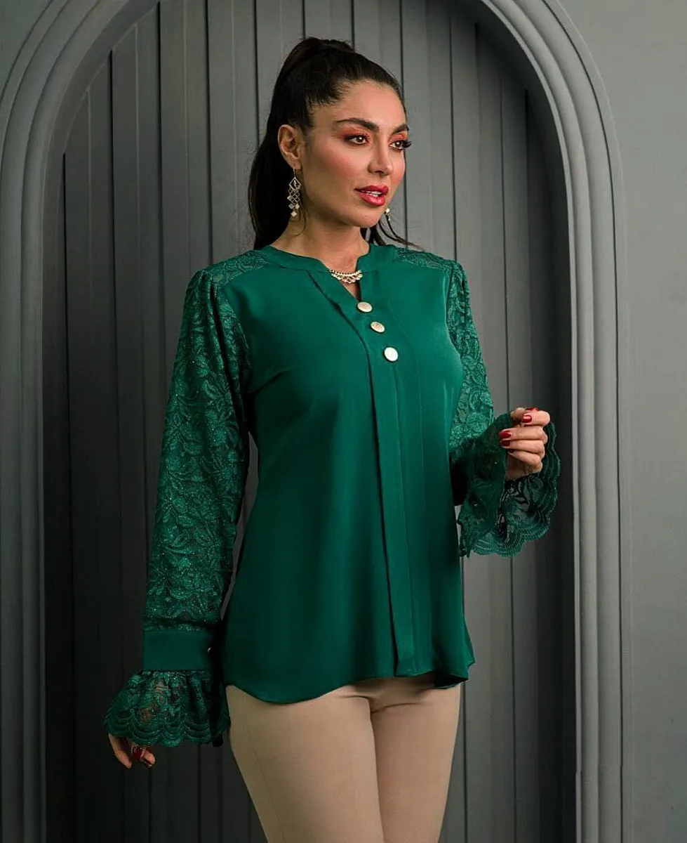 نقطهی تمایز و درخشش این شومیز، خرج کار گیپور ترک وارداتی آن است. این گیپورهای نفیس، با نقوش خاص و دوخت ظریف، جلوهای بیاندازه شیک و مجلسی به شومیز حنا بخشیدهاند. مهمتر آنکه، زیر تور آستینها کاملاً آستریدار است و به هیچ عنوان بدننما نمیباشد، تا با خیالی آسوده، زیبایی و پوشیدگی را در کنار هم داشته باشید.
