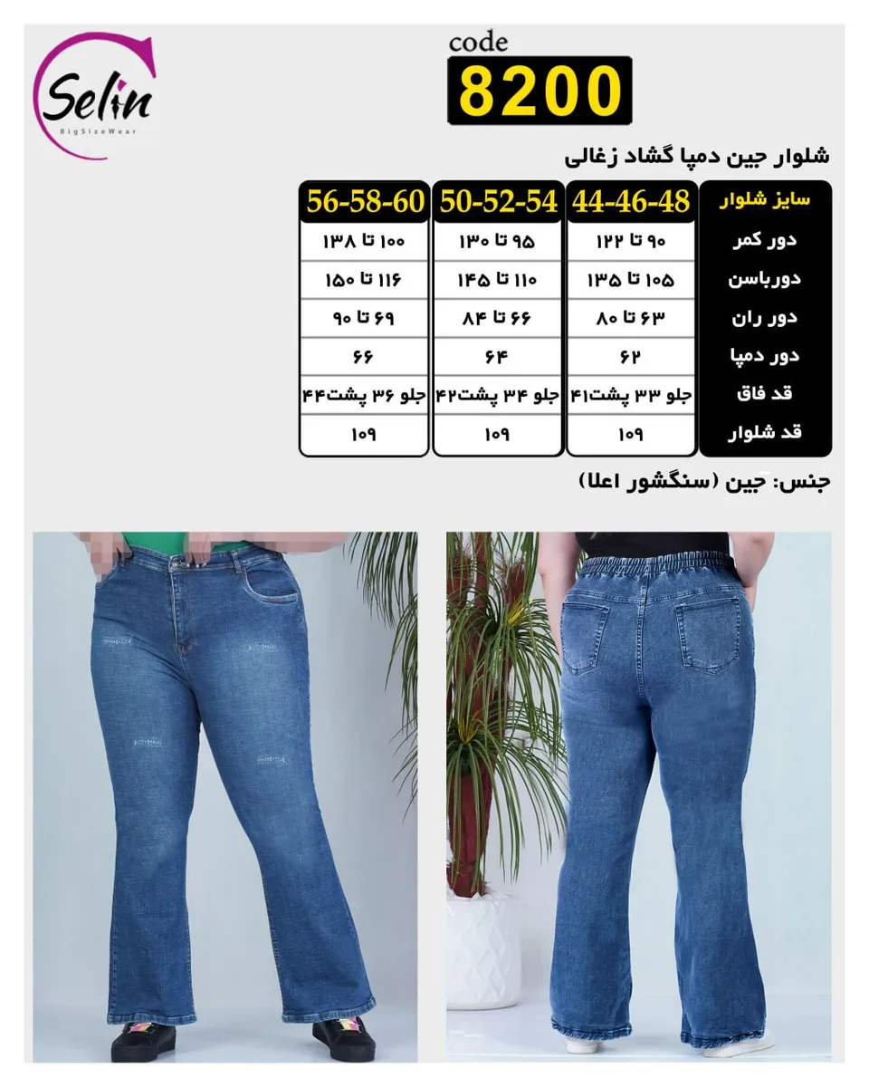 با شلوار جین دمپا گشاد کد 8200، استایلی شیک، راحت و بهروز را تجربه کنید! این شلوار با طراحی جذاب و کیفیت عالی، انتخابی ایدهآل برای خانمهایی است که به دنبال پوشاکی همهکاره و مطابق با آخرین مد روز هستند.