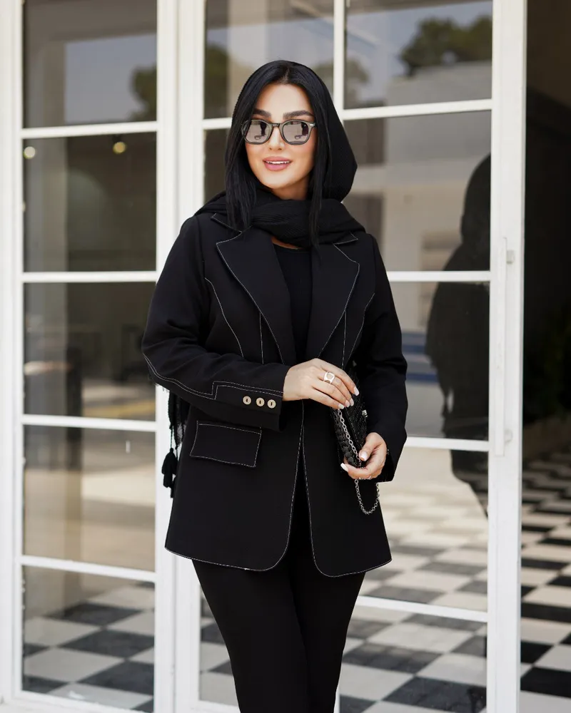 این کت با جنس کرپ مازراتی درجه یک دوخته شده و کیفیت آن تضمینی است. برای حفظ شکل و ایستایی بهتر، جلوی کار لایی پرشین خورده است تا روی بدن به بهترین شکل قرار گیرد و تنخور شیک و مرتبی داشته باشد.