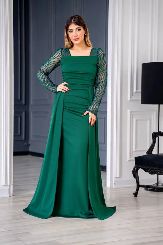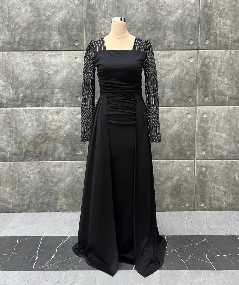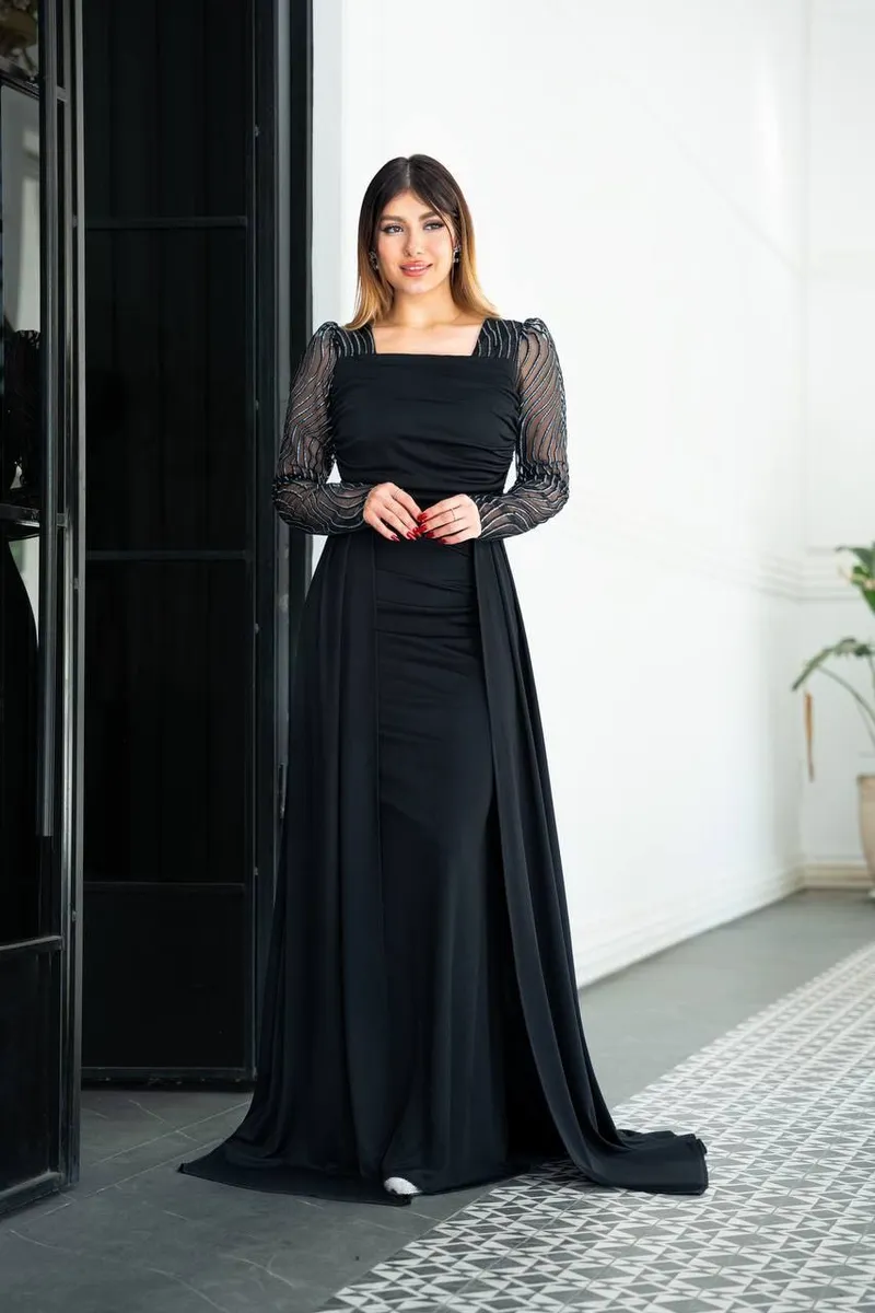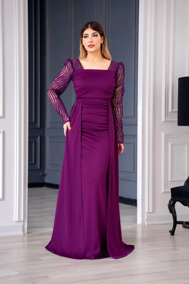 این لباس با پارچهی خاص کرپ دورو و خرجکار فلوک شاین براق طراحی شده که علاوه بر کیفیت بالا، ظاهری درخشان و چشمنواز به شما میبخشد. ترکیب این متریال باعث شده کار هم فرم ایستایی عالی داشته باشد و هم بسیار شیک و رسمی به نظر برسد.