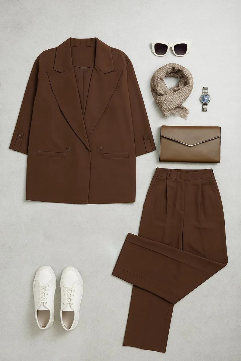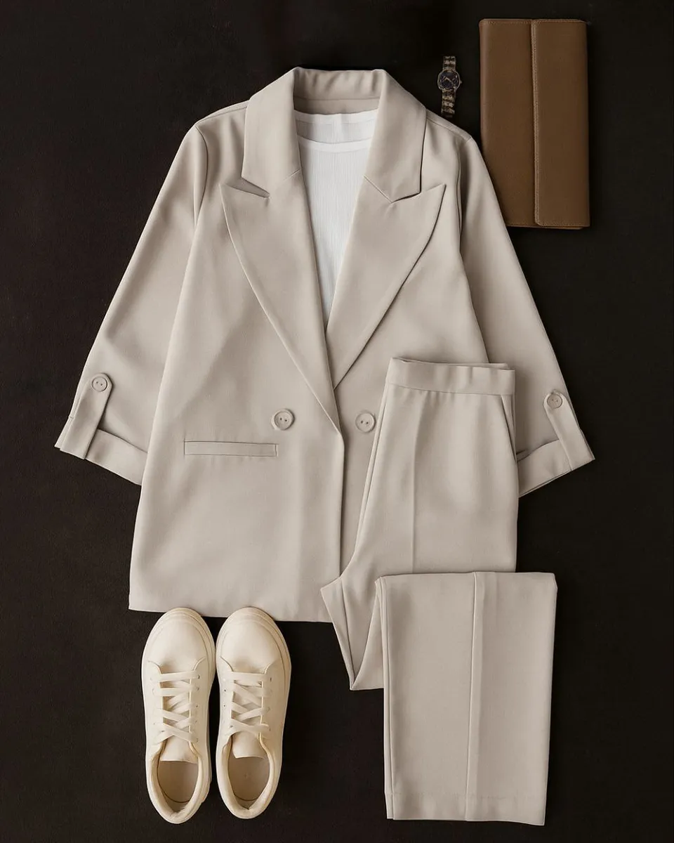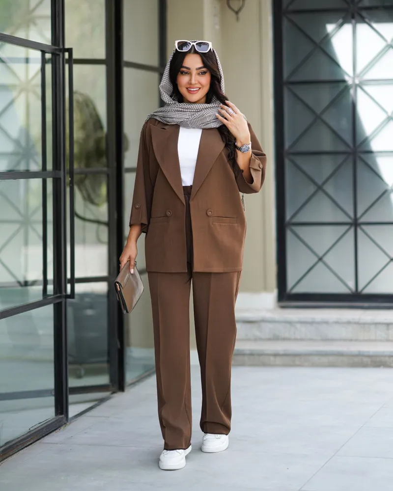 ✔️ این ست کت و شلوار، ترکیبی از راحتی و شیکی است و مناسب خانمهایی است که میخواهند در پاییز 1404 استایل کلاسیک و جذابی داشته باشند.