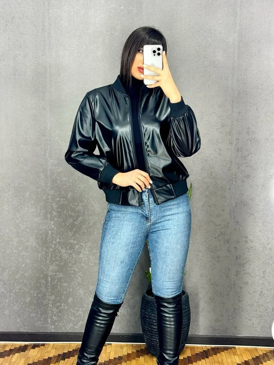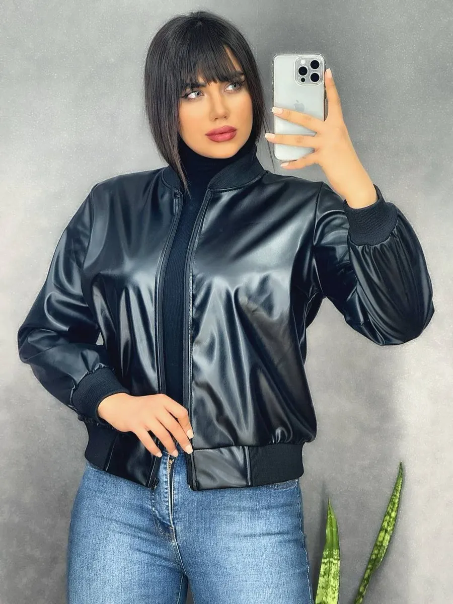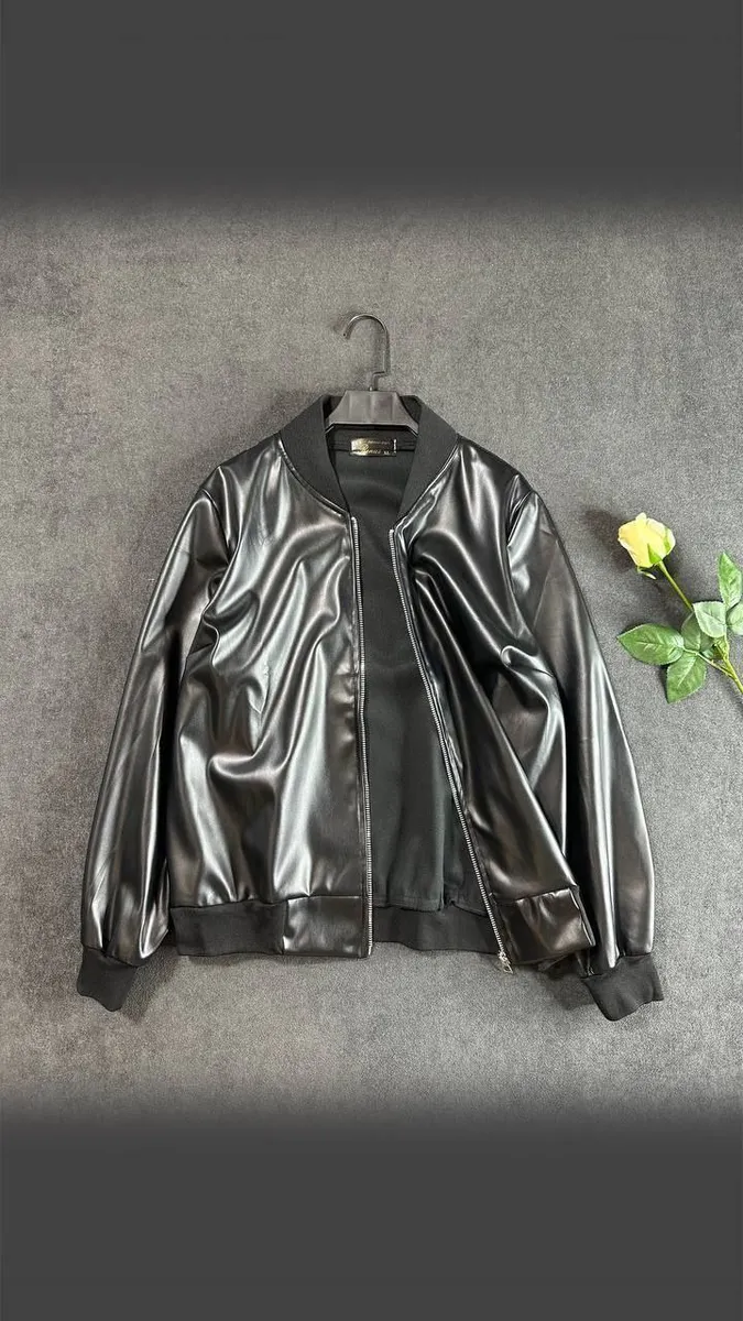 این کت چرم مشکی براق رو میتونی با بوت، نیمبوت یا حتی کتونی ست کنی و یه استایل خاص پاییزی بسازی