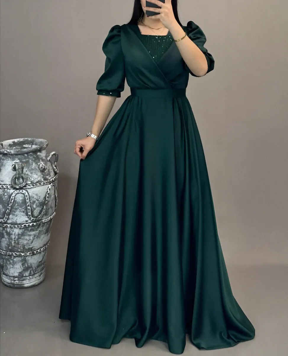 پیراهن مجلسی سولین 🤍 انتخابی لوکس و خاص برای بانوانی است که به دنبال استایلی شیک و در عین حال متفاوت هستند. این مدل با دوختی حرفهای و استفاده از پولک زارا در قسمت یقه و ساتن آمریکایی براق و خوشریخت در دامنی ماکسی، جلوهای فوقالعاده چشمگیر به شما میبخشد.