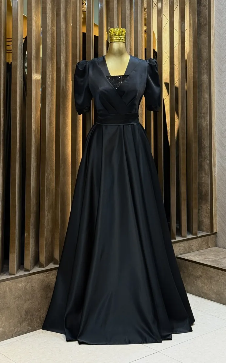 مدل یقه ترکیبی، به همراه آستینهای پفدار ظریف و کمربند هماهنگ، استایلی ظریف و زنانه ایجاد میکند که برای مهمانیهای رسمی، عروسی، نامزدی و مجالس خاص انتخابی بینقص است. طراحی این لباس به گونهای است که اندام را خوشفرم نشان داده و در عین حال راحتی را در طول پوشش فراهم میآورد.