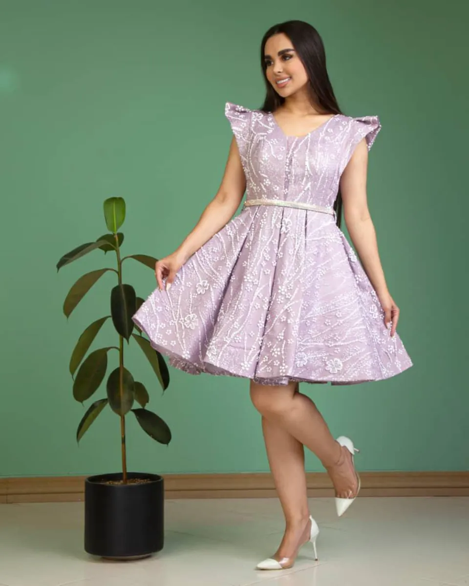 طراحی عروسکی و کوتاه: قد لباس حدود 85 سانتیمتر است و دامن پفی آن حالت پرنسسی و فانتزی به لباس میبخشد، مناسب دختران جوان و نوجوان برای جشن تولد، مهمانی یا دورهمیهای دوستانه.