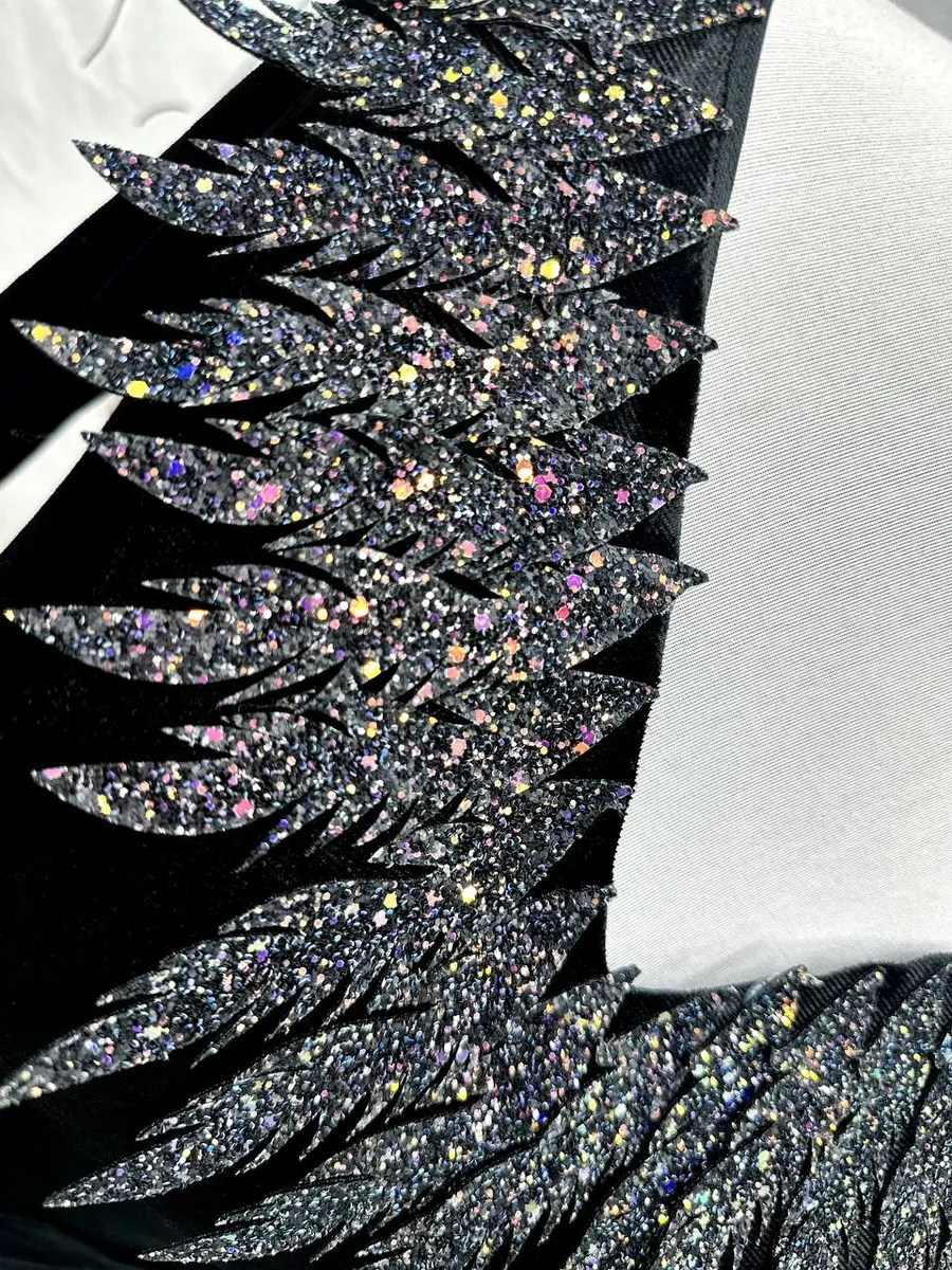 ویژگی متمایز این مدل، استفاده از خرجکار فوم اکلیلی است که جلوهای خیرهکننده و پرزرقوبرق به لباس بخشیده و باعث میشود در هر نوری بدرخشید و در مرکز توجه قرار بگیرید. ترکیب بافت نرم و مخملی پارچه با درخشش اکلیل، استایلی بینظیر خلق کرده که هم جذاب و هم کاملاً شیک است.