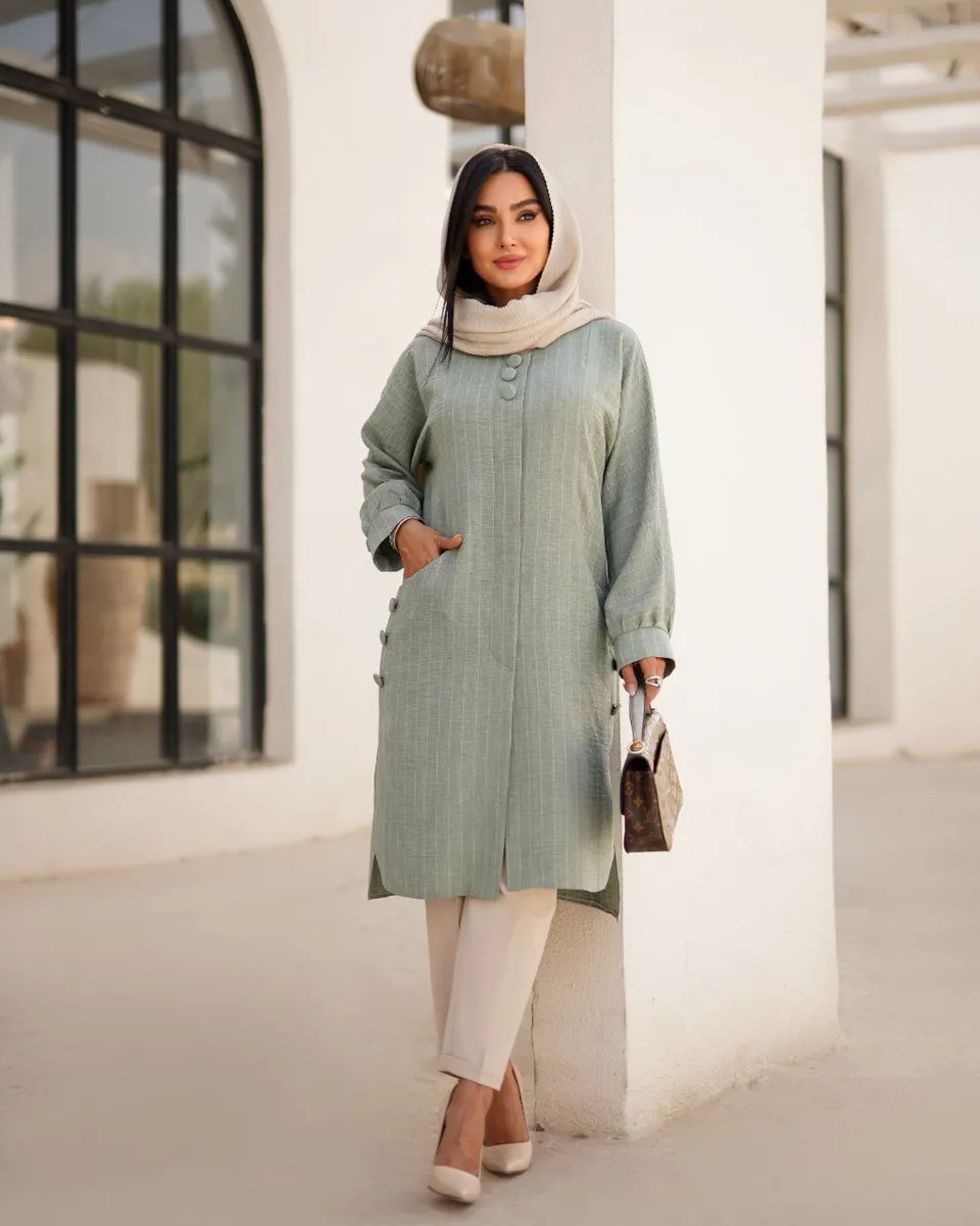 🧿 مانتو شانتون دیپلمات بغل دکمه مدل لوفر – کالکشن بهار و تابستان 1404 🌿