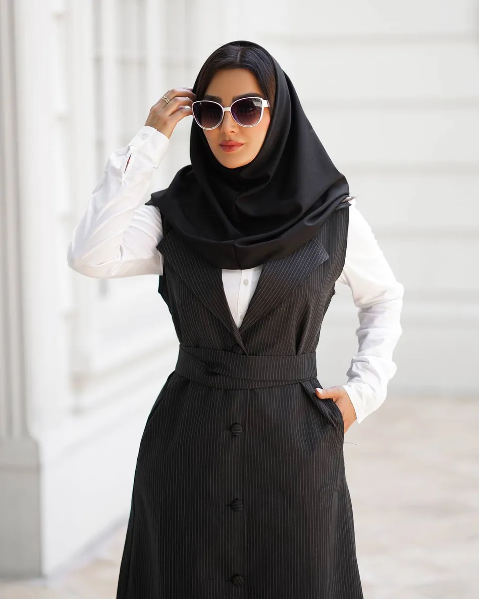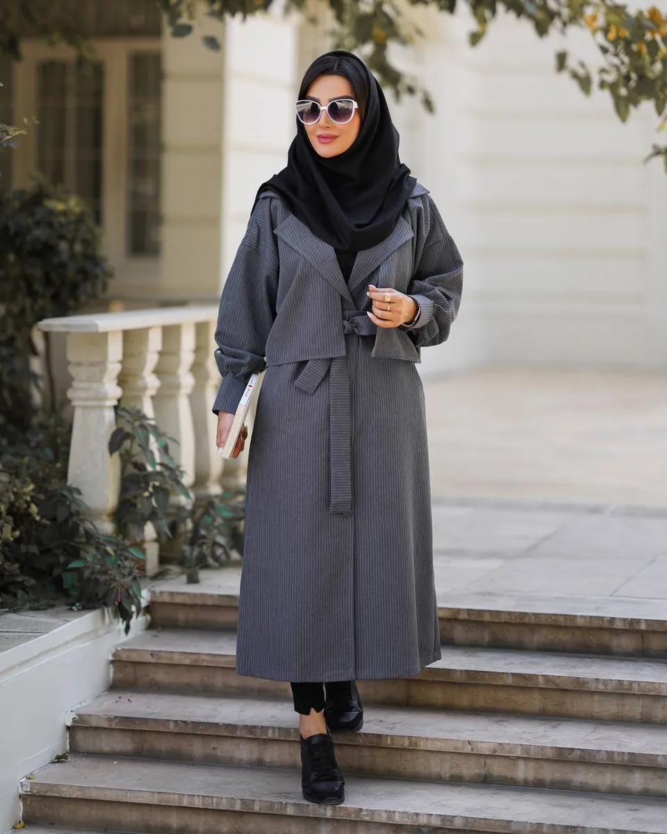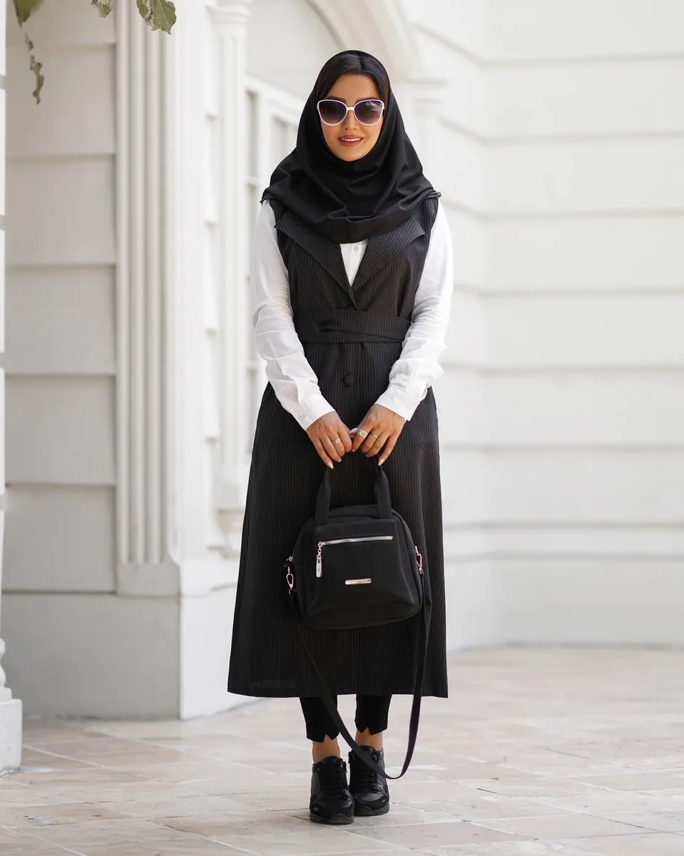 کت و سارافون با هم – مانتویی شیک و پوشیده: وقتی کت را روی سارافون میپوشید، یک مانتوی کامل و بسیار شیک دارید که برای دانشگاه، محل کار، و یا گشت و گذارهای روزمره کاملاً مناسب است و به شما ظاهری رسمی و آراسته میبخشد.