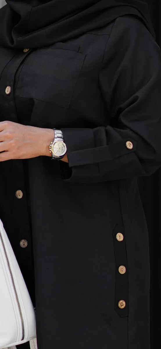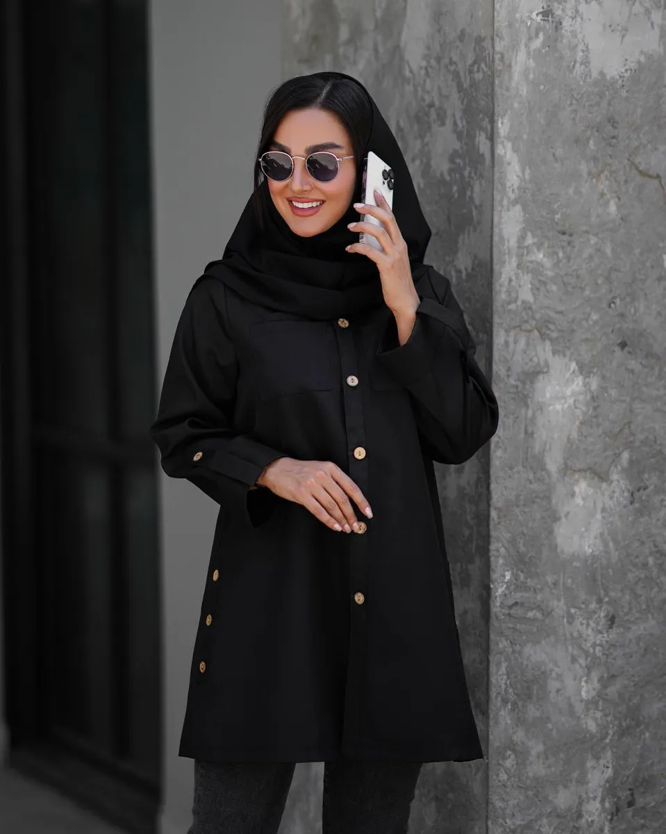 بسته شدن با دکمه از جلو - راحتی در پوشیدن!: طراحی دکمهدار از جلو، پوشیدن و درآوردن مانتو را فوقالعاده آسان میکند.