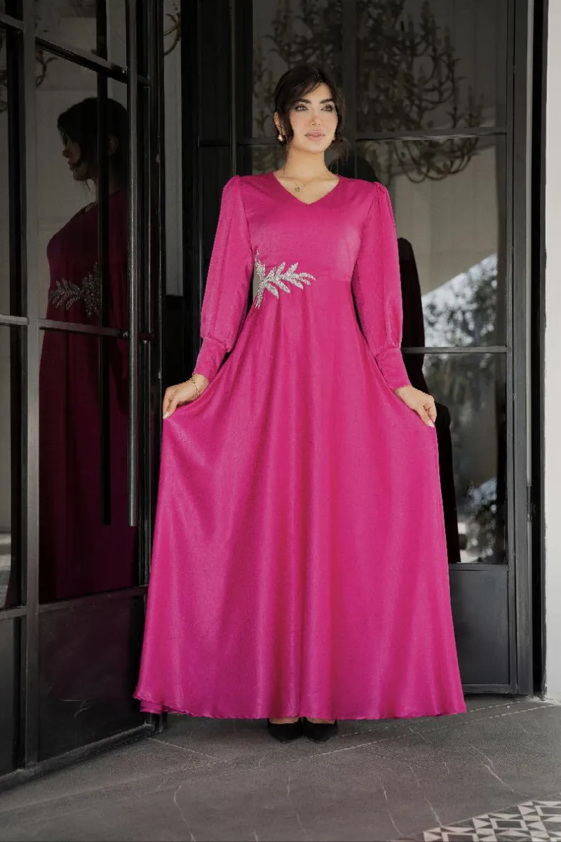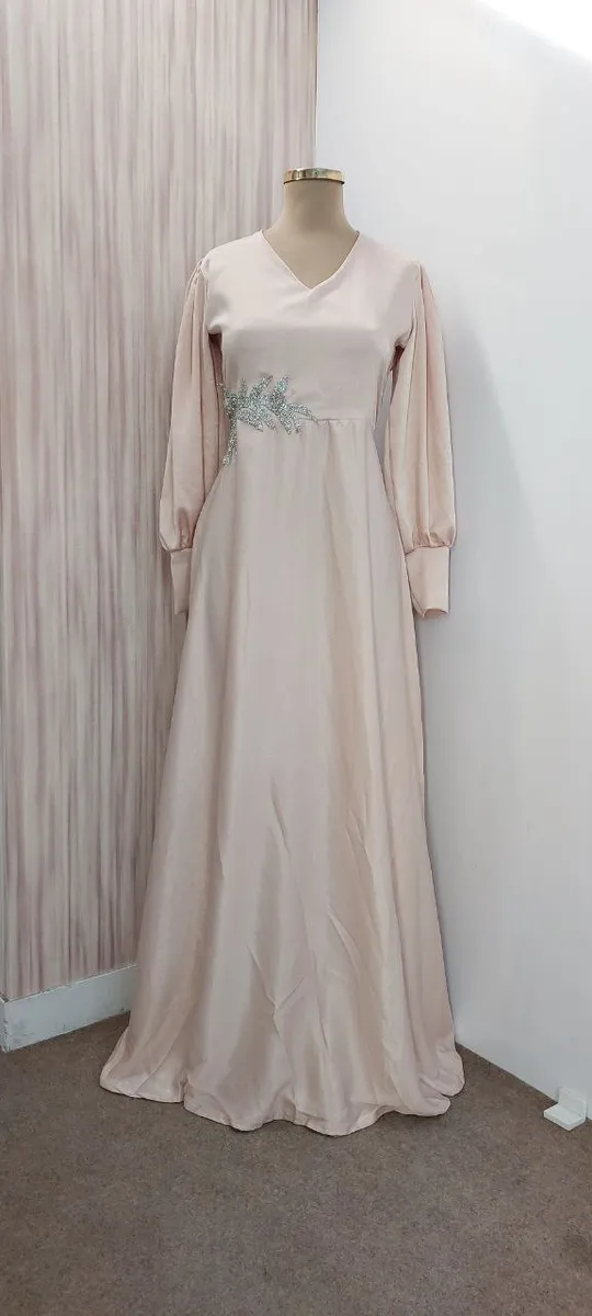اگر بهدنبال یک لباس مجلسی ساده، شیک و در عین حال پوشیده هستید که هم برای مهمانیهای رسمی و هم برای مجالس خانوادگی مناسب باشد، ماکسی مجلسی حدیث (#94008) انتخابی ایدهآل برای شماست ✨💃