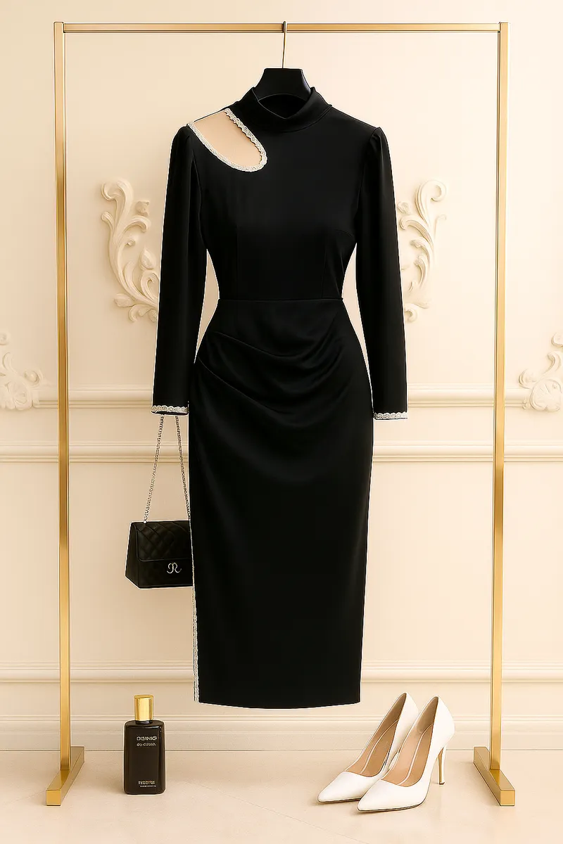 🖤 لباس مجلسی بلند ایزابلا، انتخابی خاص برای خانمهایی است که به دنبال استایلی شیک، اندامی و متفاوت هستند. این لباس با جنس غواصی درجهیک دوخته شده و طراحی آن با خرجکار نگینهای درخشان جلوهای لوکس و چشمگیر ایجاد کرده است. قسمت باز سرشانه با تور ظریف کار شده که به لباس حالتی ظریف و زنانه میدهد و پشت کار نیز با زیپ مخفی دوخته شده تا پوشیدن آن راحت و بیدغدغه باشد.