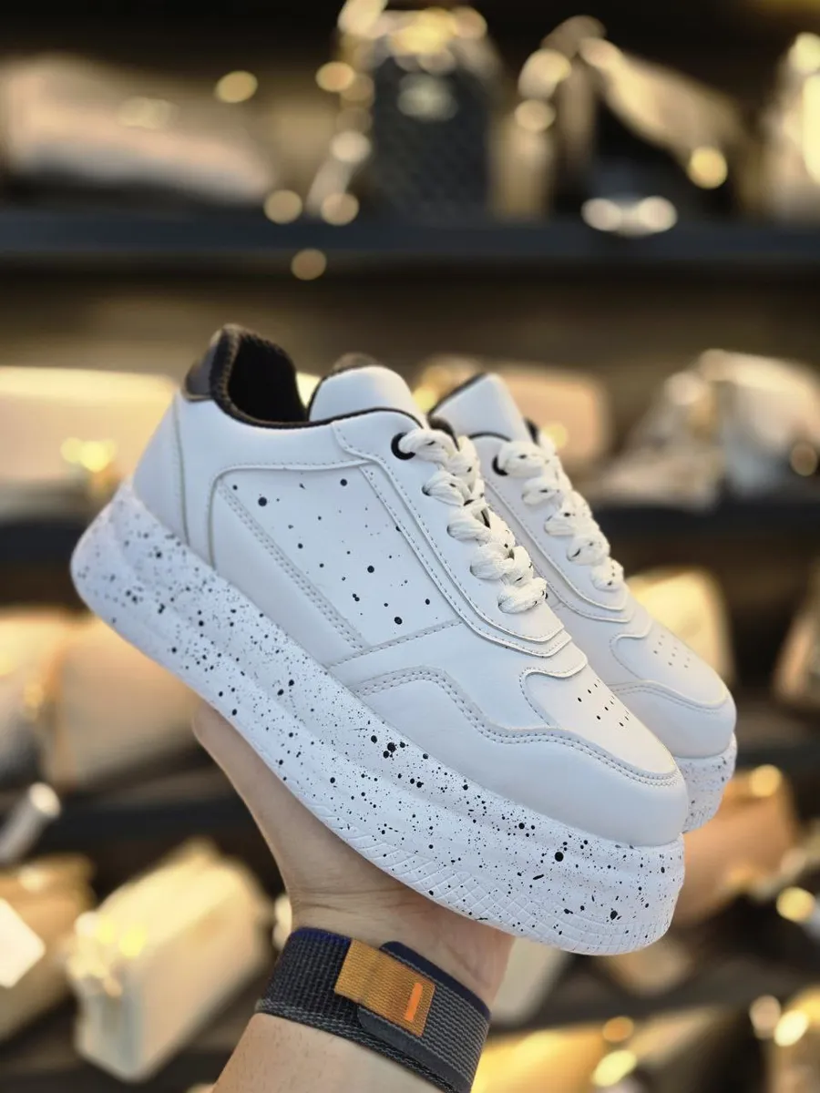 رویه کتونی از متریال باکیفیت و بادوام تهیه شده و رنگبندی پرطرفدار سفید و مشکی باعث شده جزو مدلهای پرتقاضا باشد. زیره کفش از جنس پیو (PU) ساخته شده که بسیار سبک، نرم و مقاوم در برابر سایش است و هنگام پیادهروی طولانی یا فعالیت روزمره، فشار زیادی به پا وارد نمیکند.