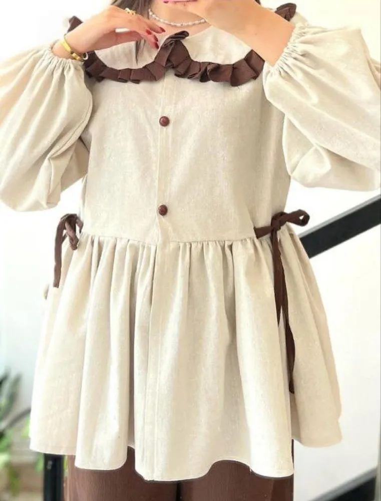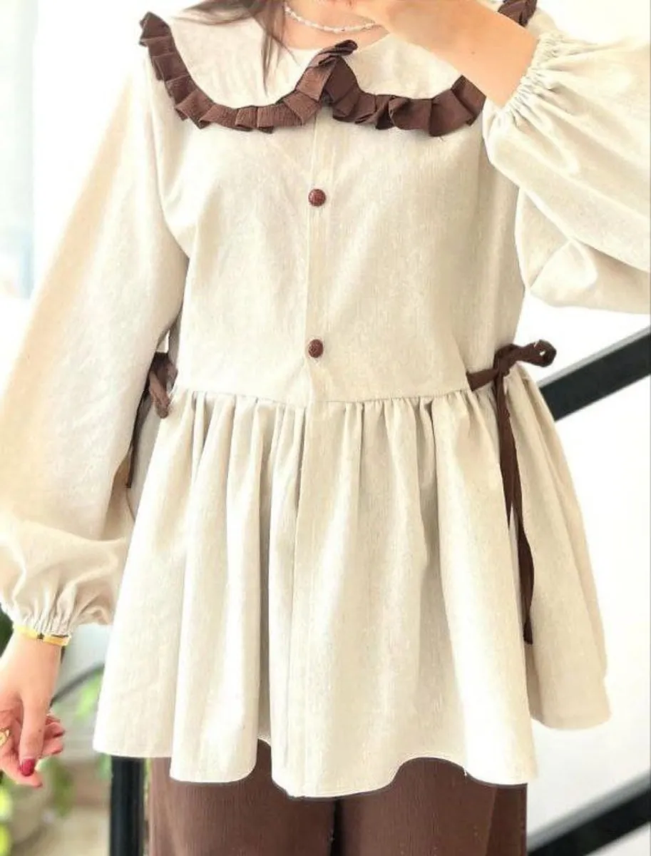 شومیز عروسکی دخترانه با طراحی خاص و تنخور شیک، انتخابی ایدهآل برای استایل پاییزهی شماست. این شومیز از جنس لینن کتان گرم بالا دوخته شده و به دلیل کیفیت پارچه، هم سبک و راحت است و هم مناسب هوای خنک پاییز و زمستان.