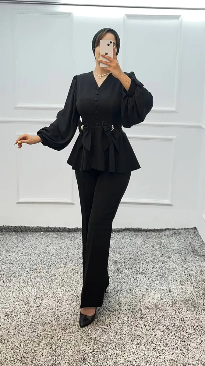 شومیز با قد 88 و طراحی پوشیده، بهخوبی با شلوار خوشفرم با قد 100 هماهنگ شده و ترکیبی جذاب و اندامی برای مجالس، مهمانیها و دورهمیهای رسمی ایجاد میکند. این مدل در رنگهای پرطرفدار مشکی و سفید عرضه میشود و سایزبندی کامل (38 تا 48) دارد تا هر خانمی با هر سلیقه و اندامی بتواند بهراحتی انتخاب خود را داشته باشد.