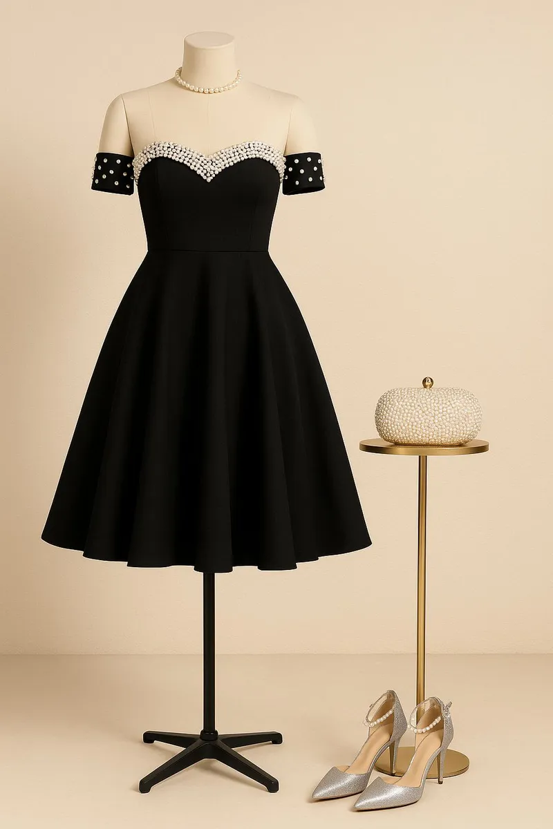این لباس کوتاه با دوخت عروسکی، باعث میشود اندام شما خوشفرمتر دیده شود و حس دخترانه و پرانرژی به استایلتان ببخشد. طراحی خاص و ظریف مرواریدها روی لباس جلوهای منحصر به فرد ایجاد کرده که مناسب مجالس و مهمانیهای رسمی و نیمهرسمی است.