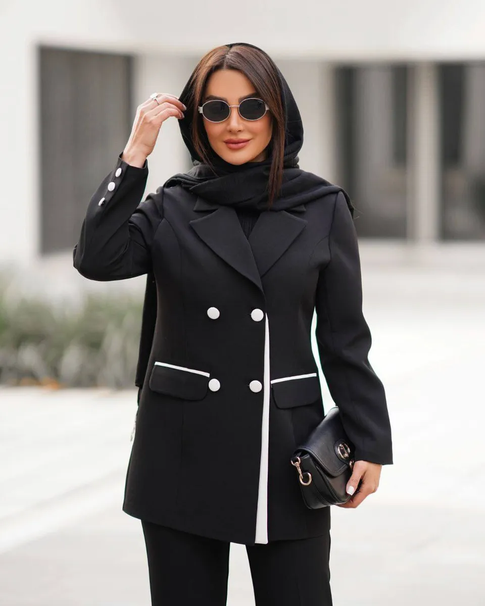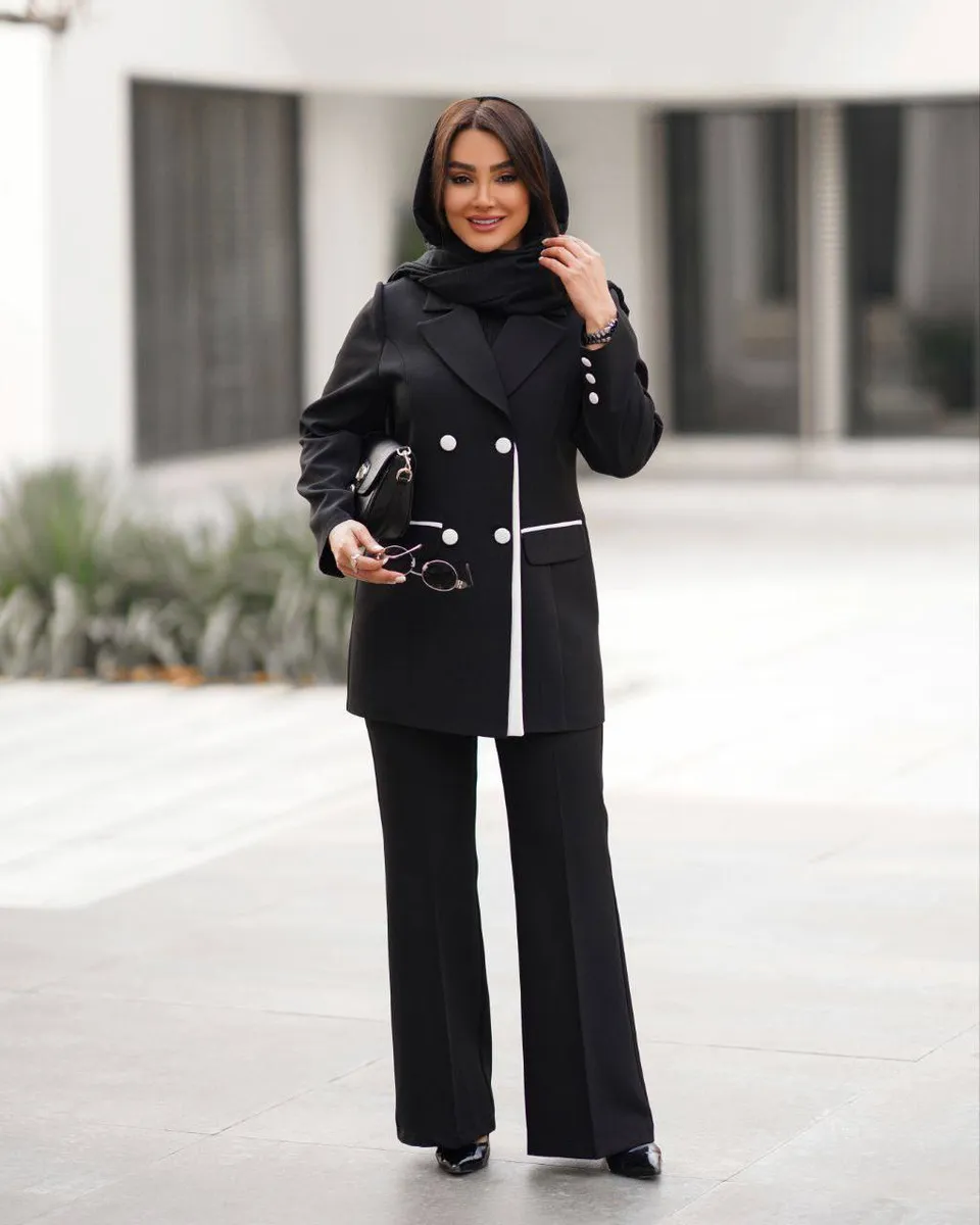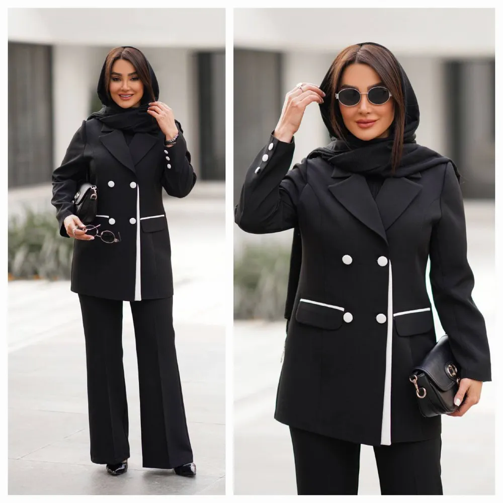 قد کت حدودا 75 قد شلوار حدودا 105 جلوی کت لایه کوبی دوخت مزونی جیبها