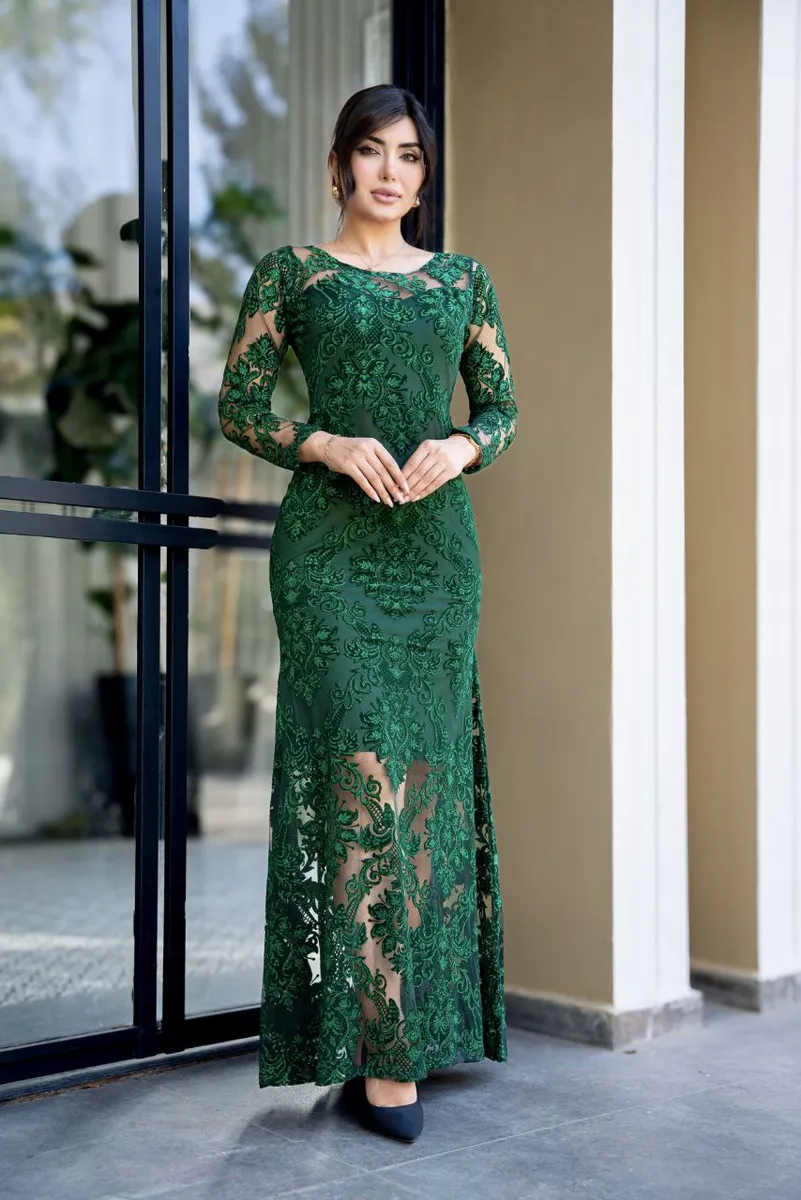 رنگبندی کلاسیک و پرطرفدار سبز و مشکی در این لباس، به شما آزادی عمل بالایی برای ست کردن با اکسسوریهای مختلف میدهد. چه بخواهید با کفش پاشنهبلند مجلسی استایل رسمیتر بسازید، چه با کیفهای کوچک و اکسسوری براق جلوهای درخشانتر به تیپ خود بدهید، این لباس به زیبایی با هر ترکیب هماهنگ میشود.