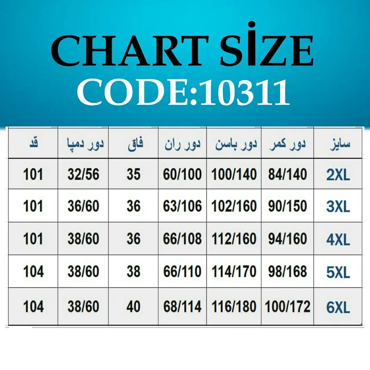 🛑توجه🛑اعداد اول در این چارت حالت عادی شلوار و عدد دوم نهایت کشسانی هست.
