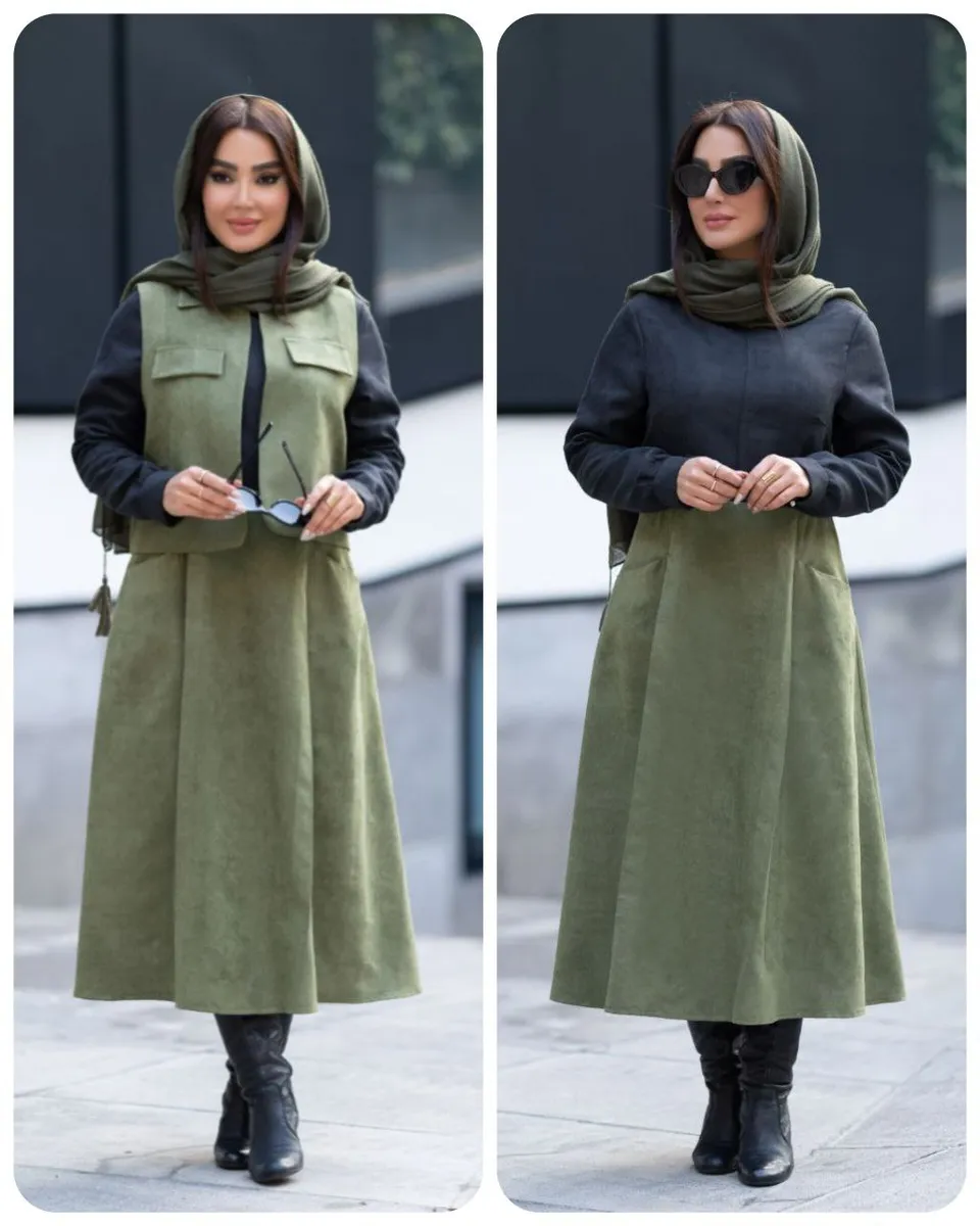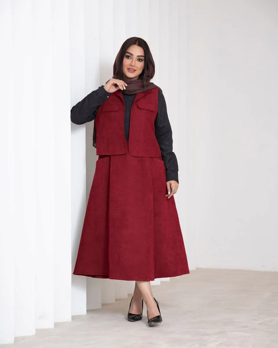 این ست پیراهن و جلیقه پاییزه، انتخابی عالی برای خانمهایی است که به دنبال استایل سنتی-مدرن هستند. ترکیب جلیقه و پیراهن باعث میشود ظاهری متفاوت و خاص داشته باشید و به راحتی با بوت، کفش اسپرت یا اکسسوریهای پاییزی ست شود.
