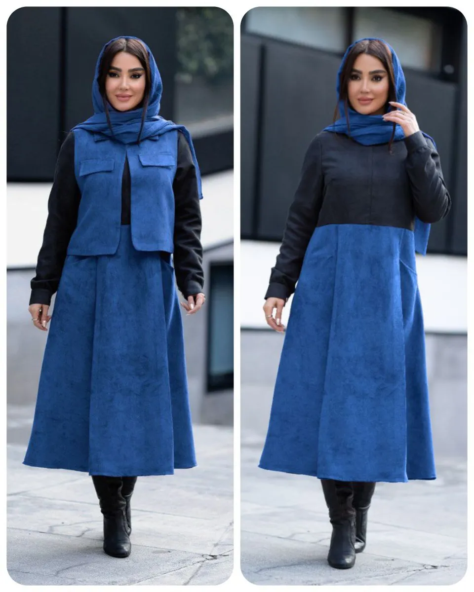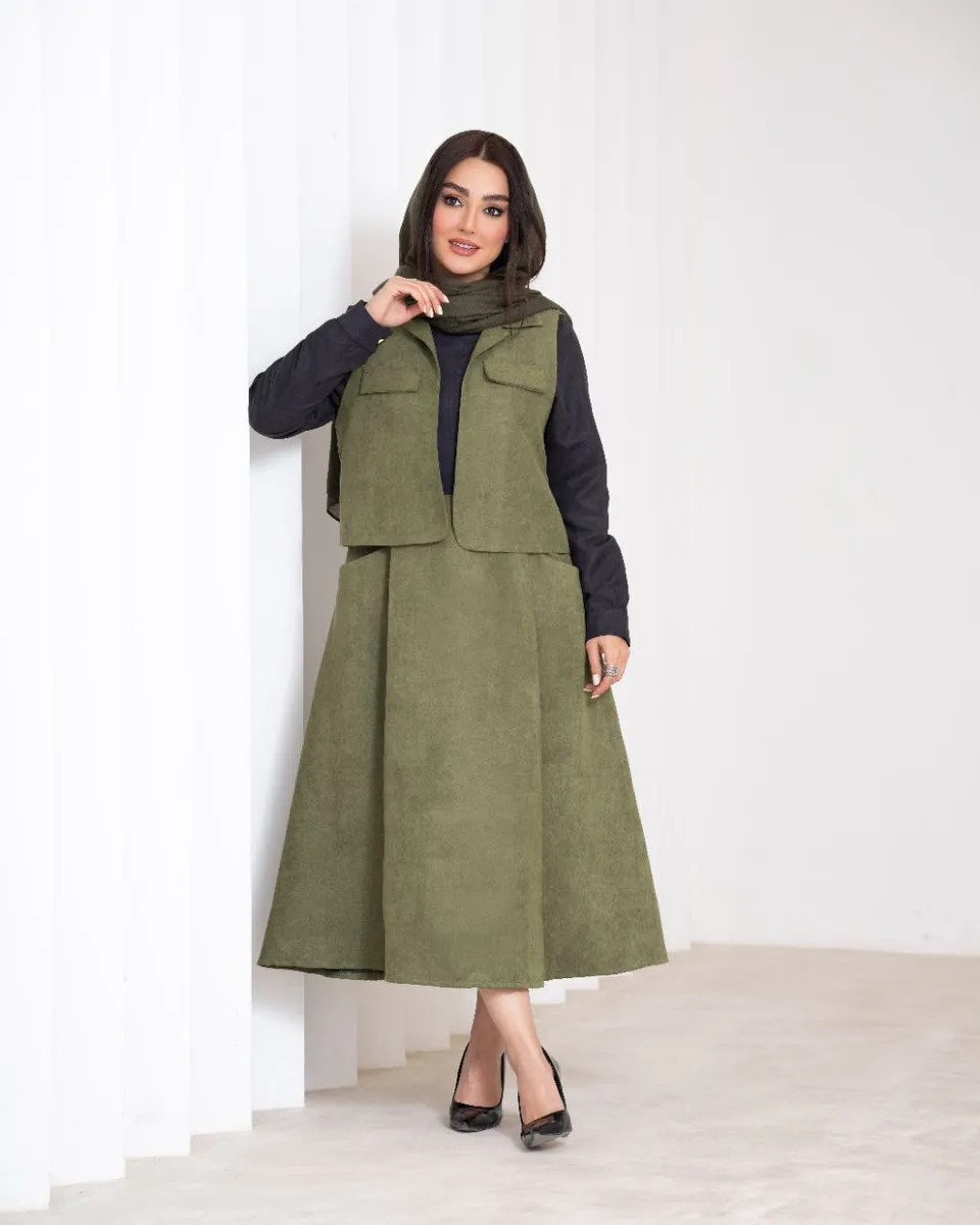 دوتیکه: پیراهن بلند + جلیقه کوتاه
