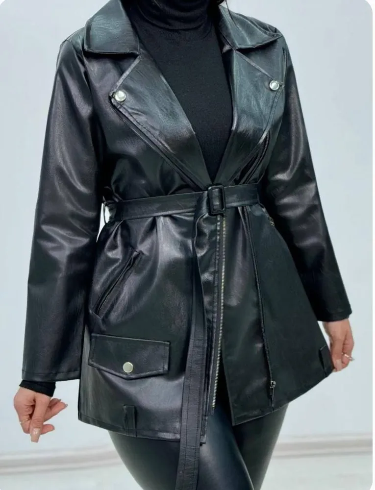 مانتو چرم کمربندی فریسایز: بمب فروش با استایلی بینظیر!