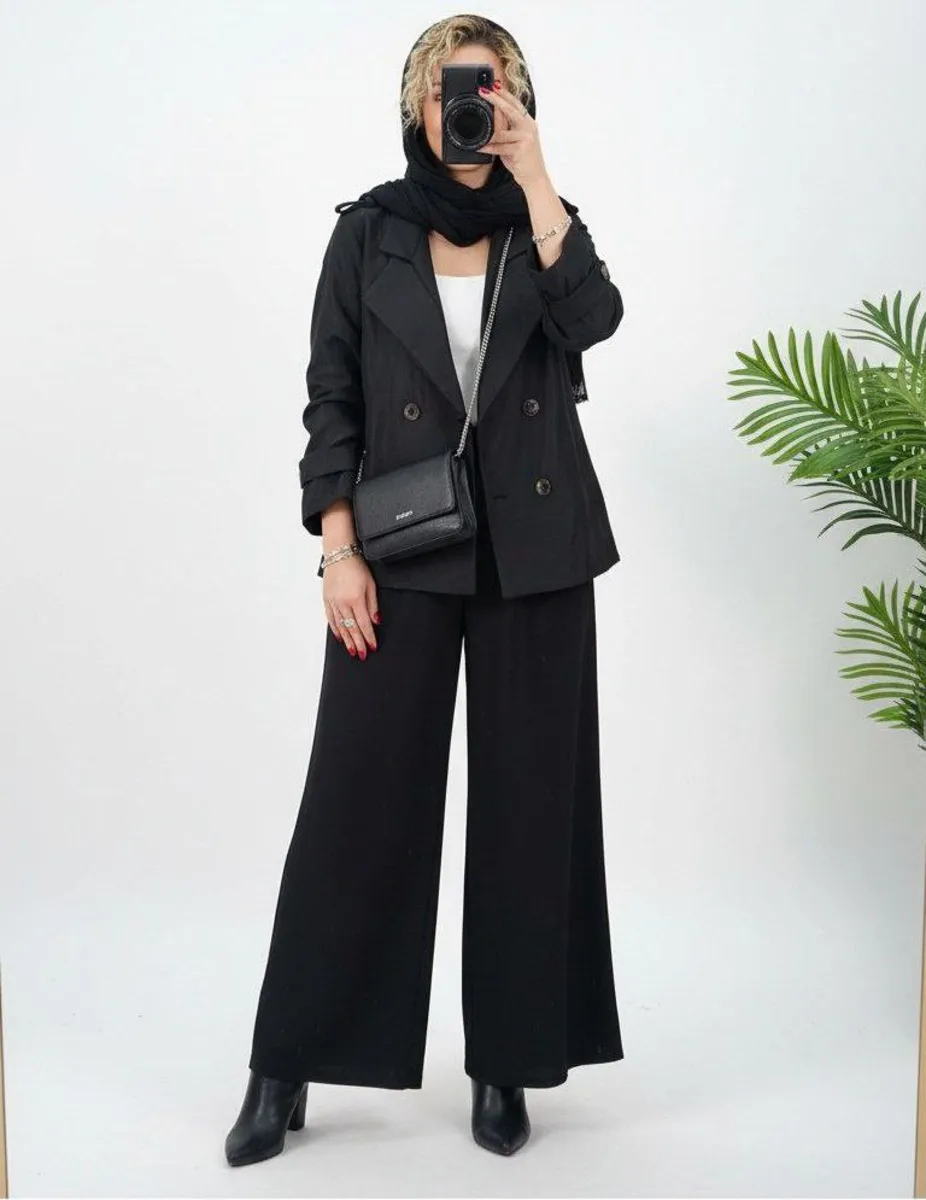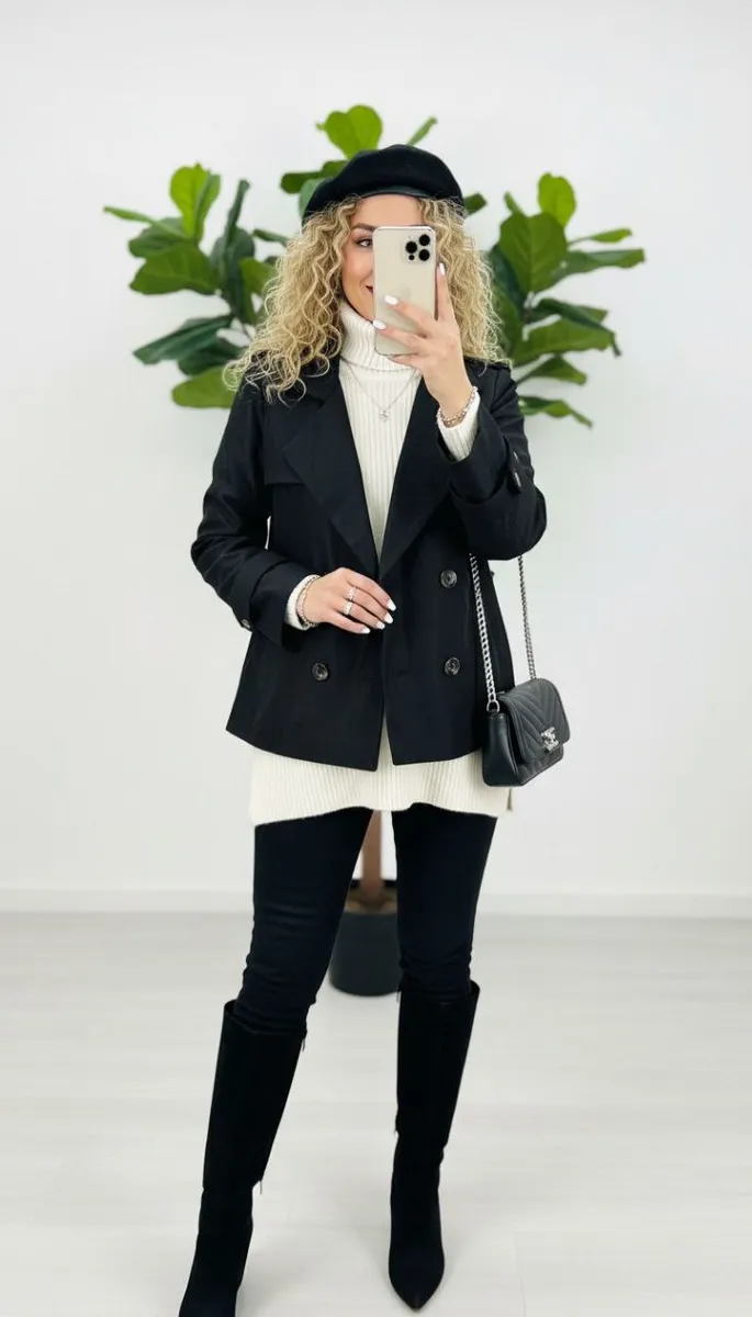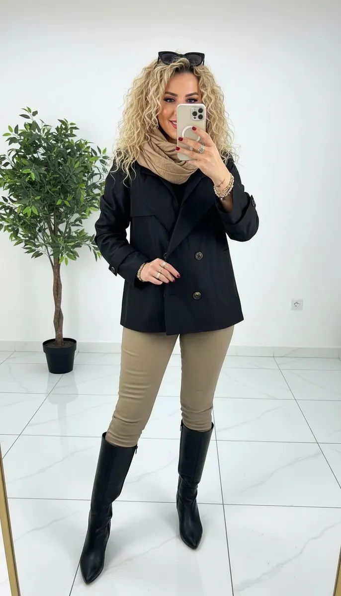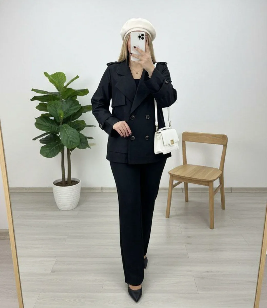 یه ترنچ کت کوتاه پاییزی واسه روزای رنگی پاییز ،با شلوار جین وپارچه ای یا چرم ،با شلوار واید یا جذب،همه جوره قشنگه ،جنسش سانتانا بارونی ضد آبه ،داخل کار استر دوزی شده و کاملا گرمه