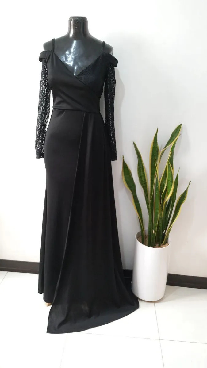آستینهای توری خوشدوخت، جلوهای خاص و ظریف به استایل میدن و قد ماکسی لباس باعث میشه اندام کشیدهتر و فوقالعاده شیک به نظر بیاد 👌