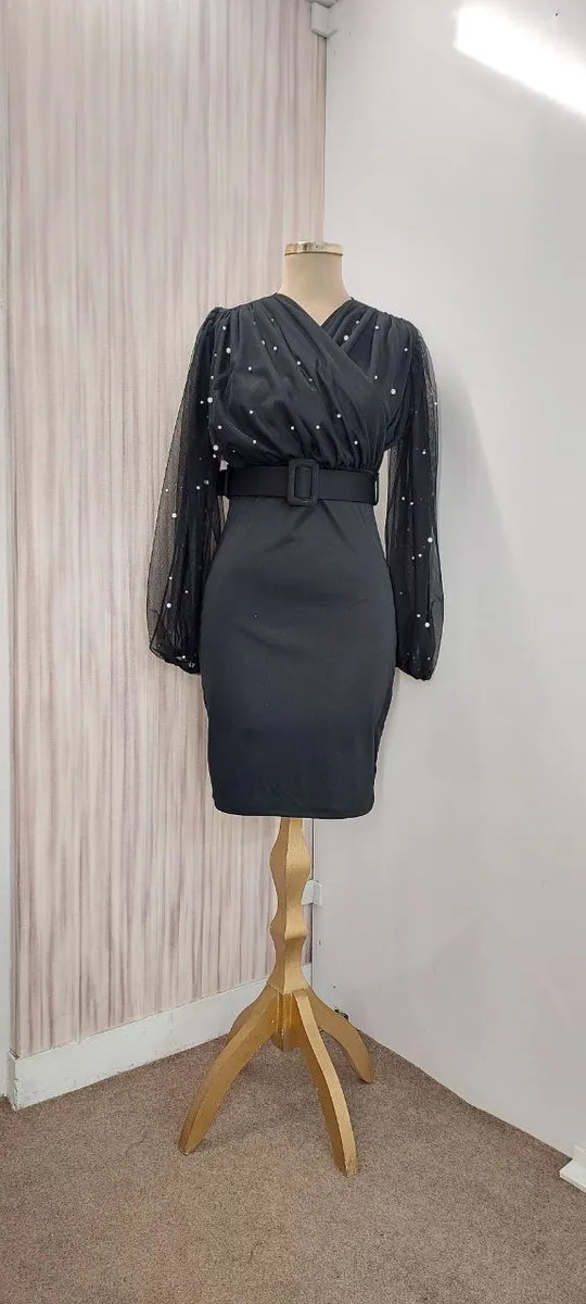 جزئیات خاص مثل مروارید پانچی کارشده روی لباس جلوهای درخشان و کاملاً متفاوت به کار داده که مناسب جشن تولد، دورهمی دوستانه و حتی مهمانیهای خاص است. 🌸💎