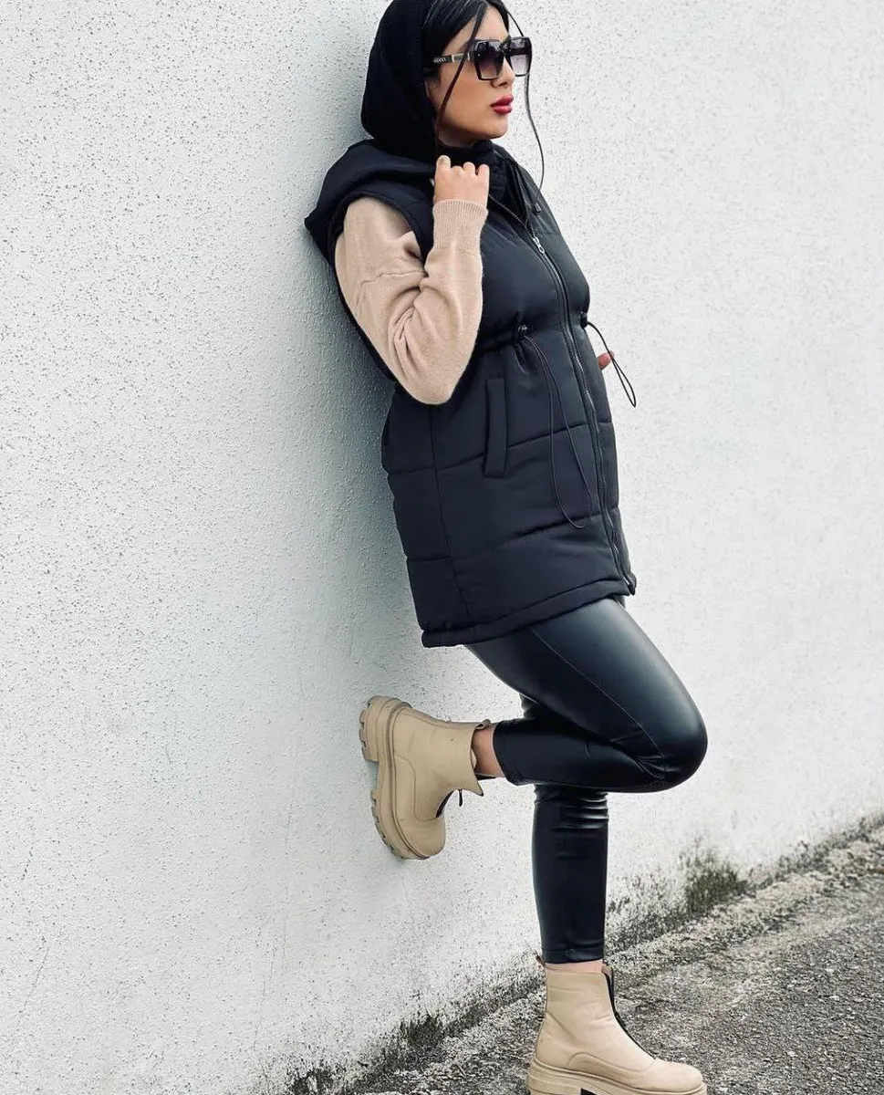 قد کوتاه و مدرن (80-85 سانتیمتر): این پافر با قد نسبتاً کوتاه (حدود 80-85 سانتیمتر)، برای استایلهای روزمره و کژوال عالیه و به راحتی با شلوار جین، لگینگ و نیمبوت ست میشه.