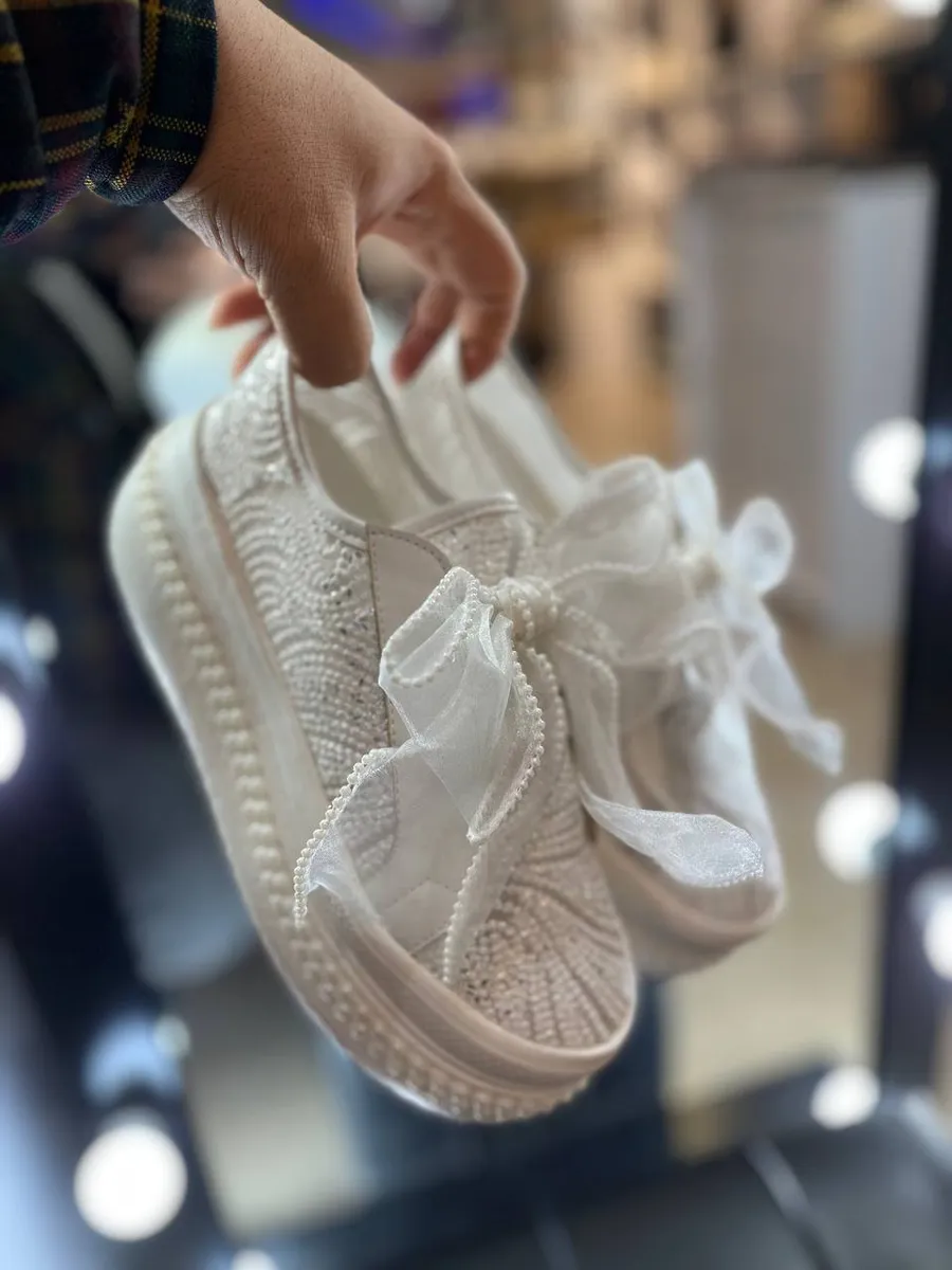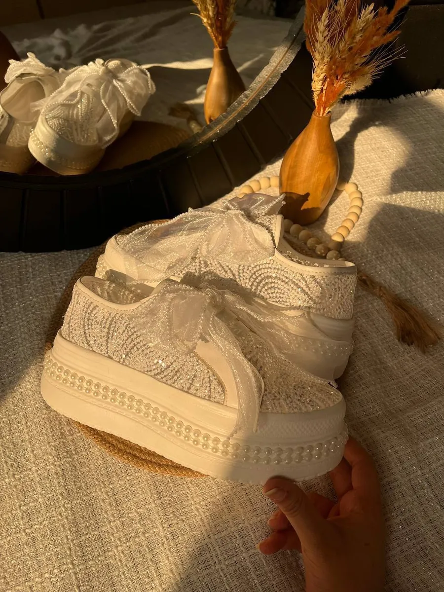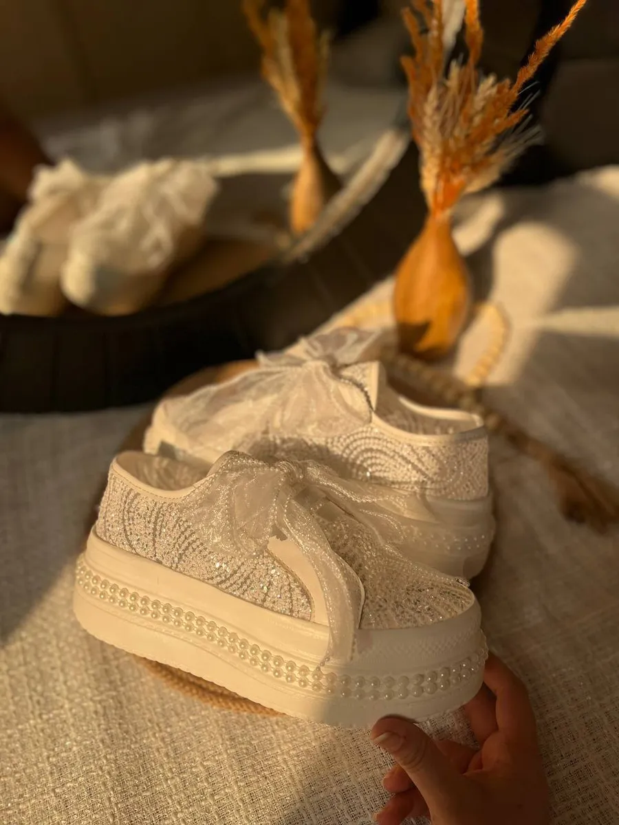 انتخابی بینظیر برای مراسمهای خاص: تصور کن این کتونی سفید پاپیونی عروسکی رو در مراسم عقد، نامزدی، پاتختی یا حتی تولدت به پا داری! نه تنها درخشان و متفاوت به نظر میرسی، بلکه راحتی بیحد و حصری رو تجربه میکنی که کمتر کفشی میتونه بهت بده. استایل خاص و زیبای تو، با این کتونی تکمیل میشه.
