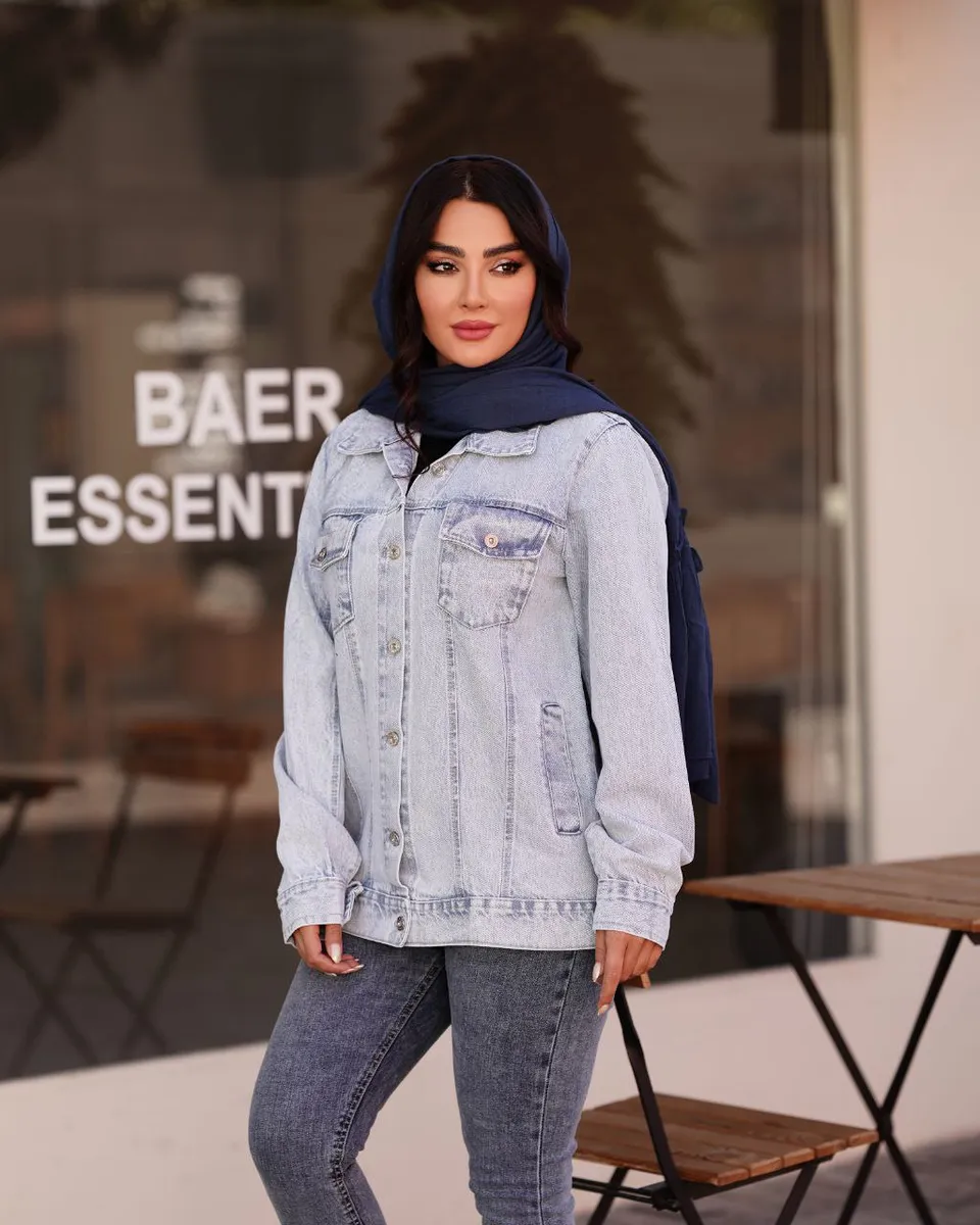 رنگ خاص آبی یخی این کت جین، بهراحتی با شلوار جین، شلوار پارچهای یا حتی دامن ست میشود و برای استایل روزمره، دورهمیهای دوستانه یا حتی استایل خیابانی بهترین گزینه است. سایزبندی آزاد آن مناسب 38 تا 46 طراحی شده و تنخور بسیار راحتی دارد.