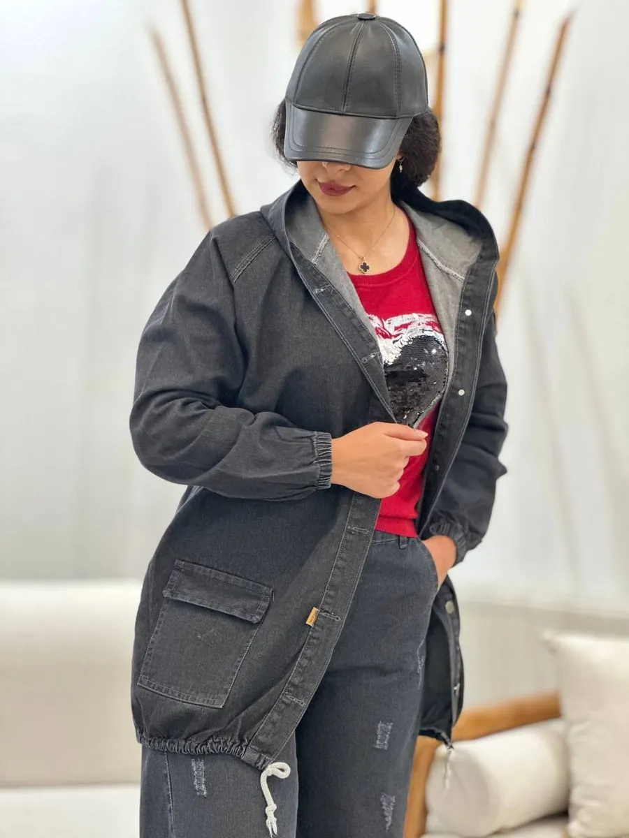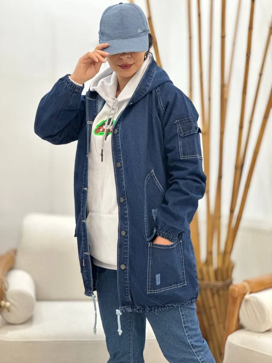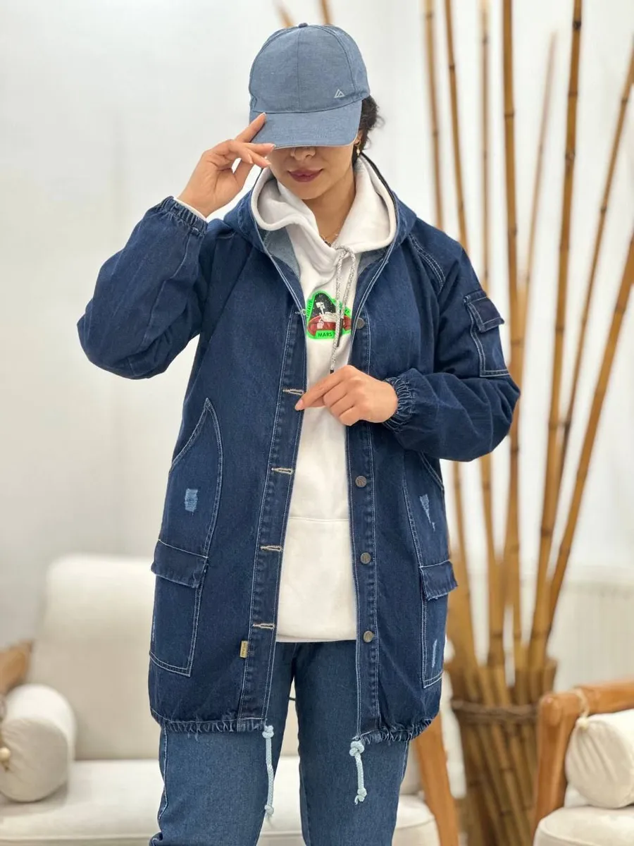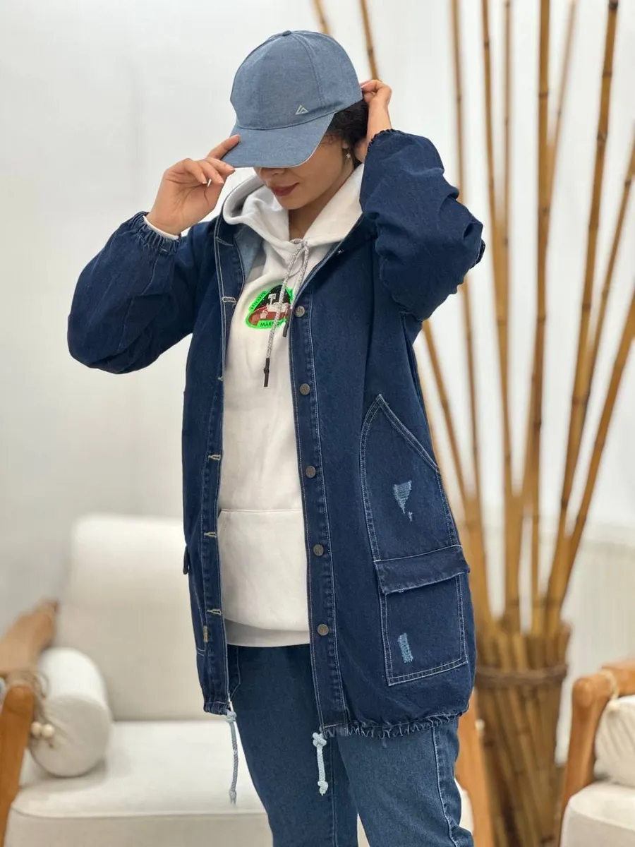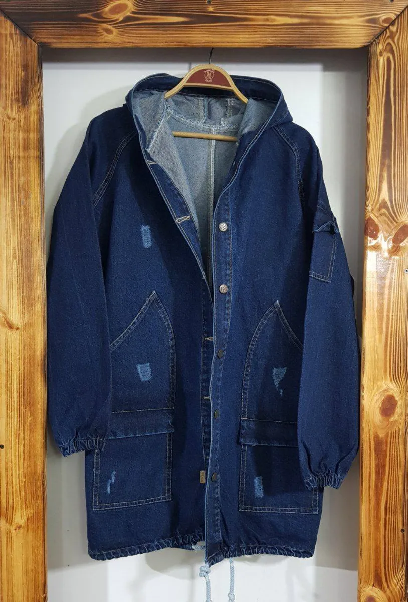 عنوان جذاب: 🍂 مانتو جین کلاهدار “آرتیمیس”: استایلی بیزمان، کیفیتی بینظیر برای پاییز شما! 🍂