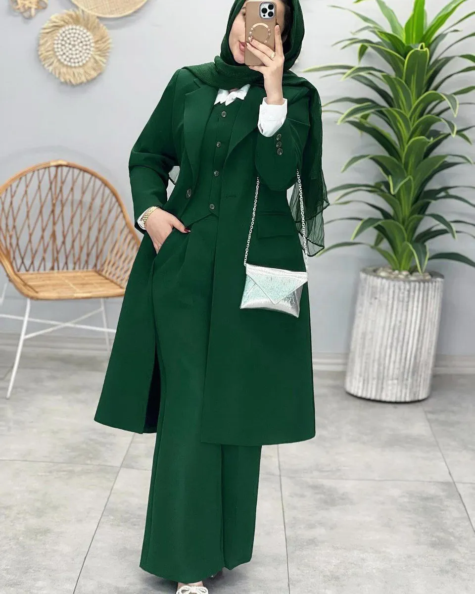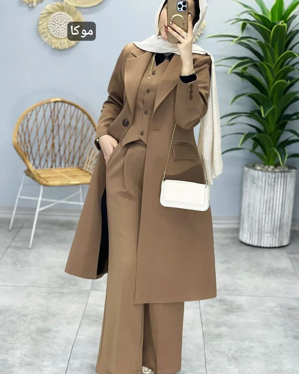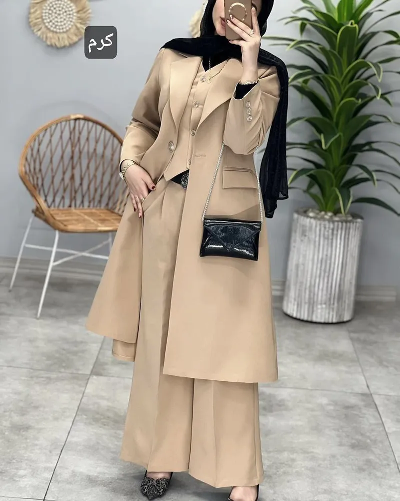 ست سهتکه کامل: مانتو، جلیقه و شلوار! این مجموعه شامل سه آیتم کاربردی و هماهنگ است: