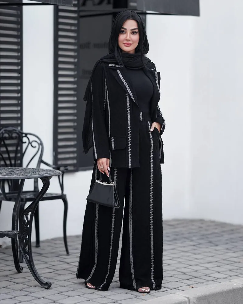 عنوان جذاب: ⚫️ کت شلوار “سروین” ژاکارد: تلفیق شیکی مجلسی و راحتی اسپرت در رنگ مشکی! ⚫️