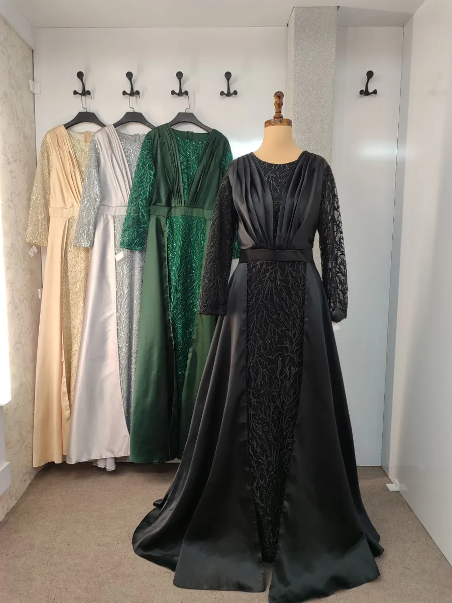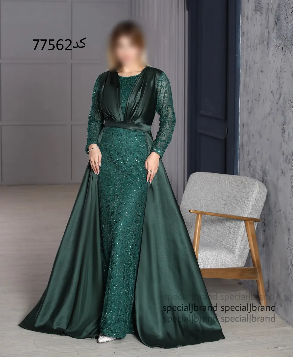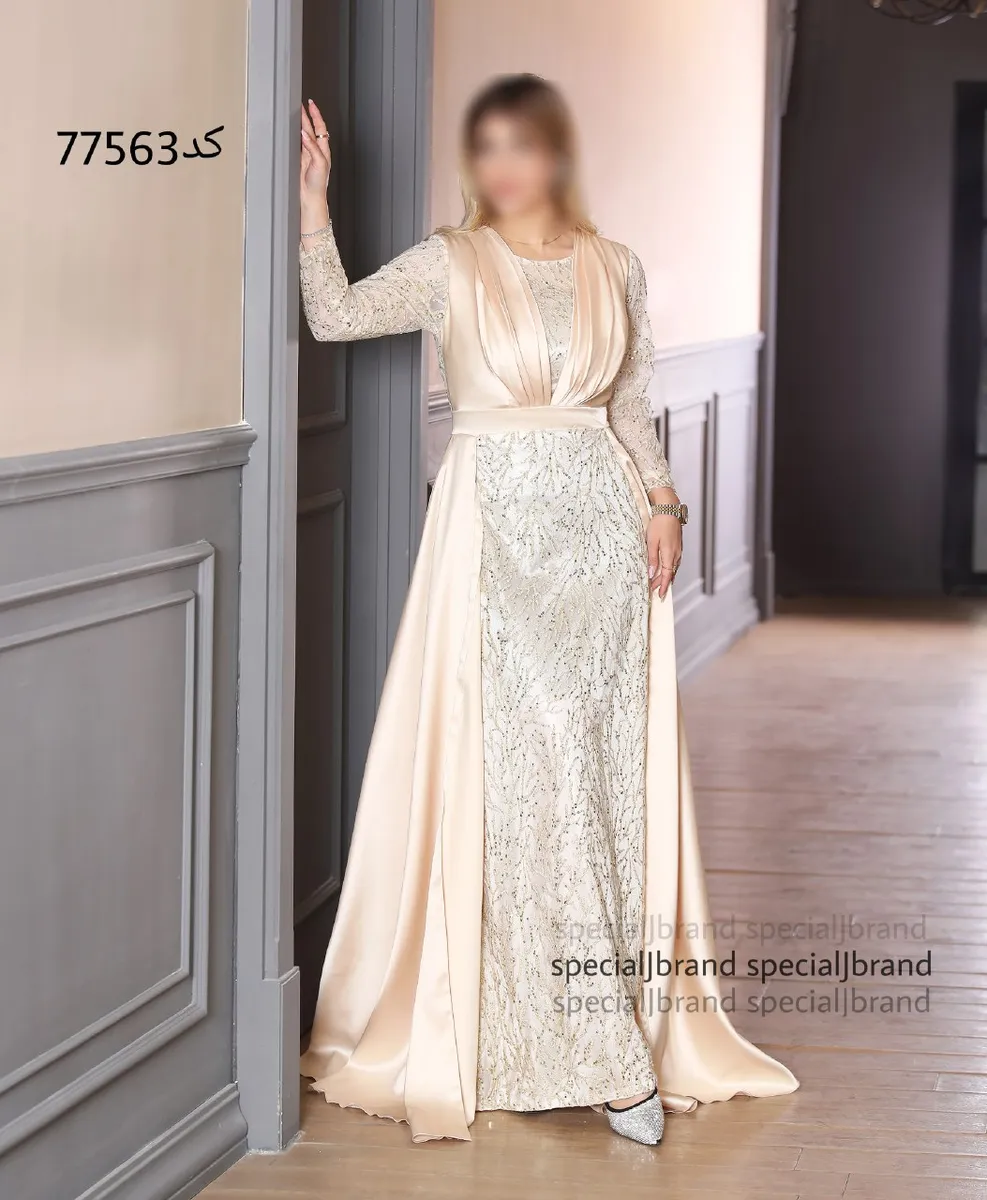 **عنوان جذاب: ✨ پیراهن مجلسی "آریانا": تلفیقی از شکوه فلوک شاین، ظرافت ساتن و درخششی بینظیر! ✨**