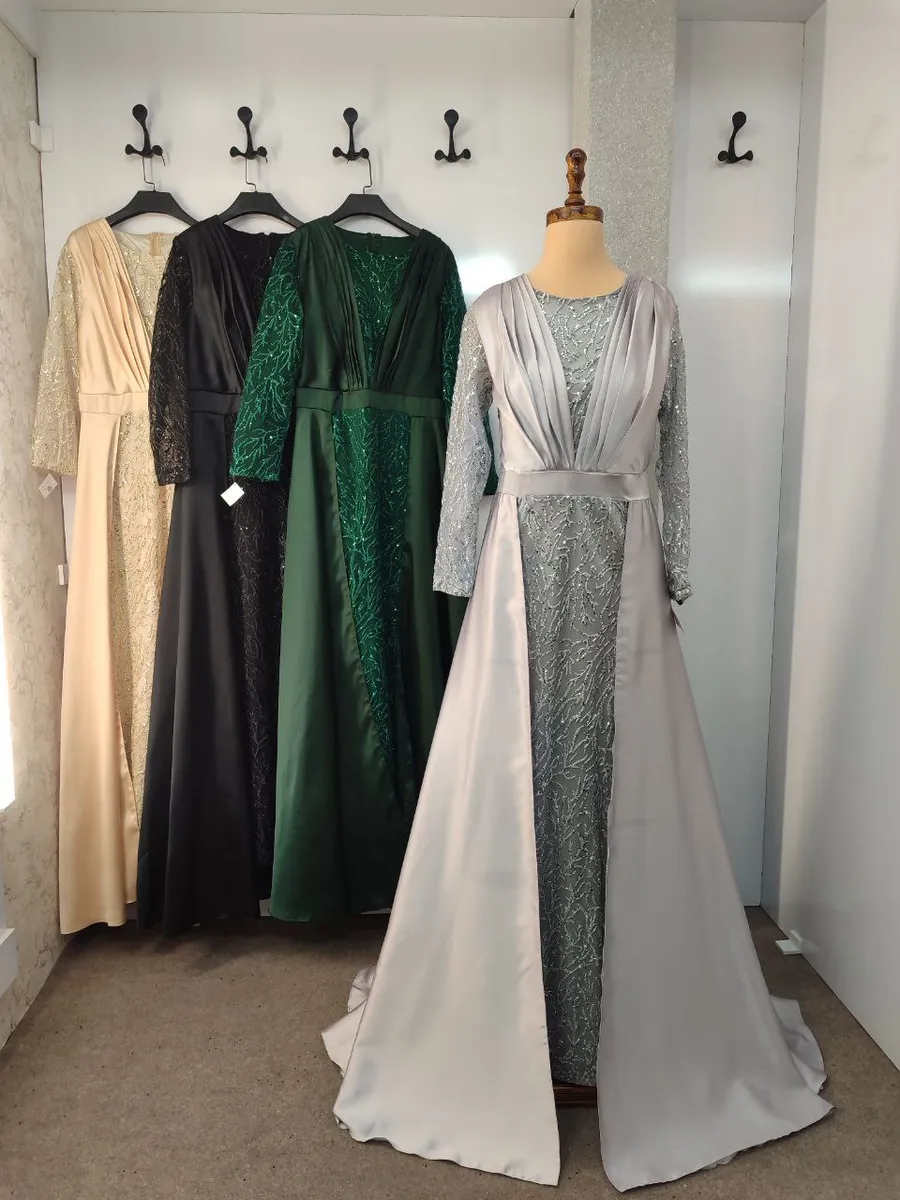 * **رنگبندی لوکس:** پیراهن "آریانا" در رنگهای چشمنواز **نقرهای، کرمبژ و سبز** موجود است. این رنگها، زیبایی جنس فلوک شاین و ساتن را دوچندان کرده و انتخابی عالی برای مهمانیها و مراسم خاص هستند.