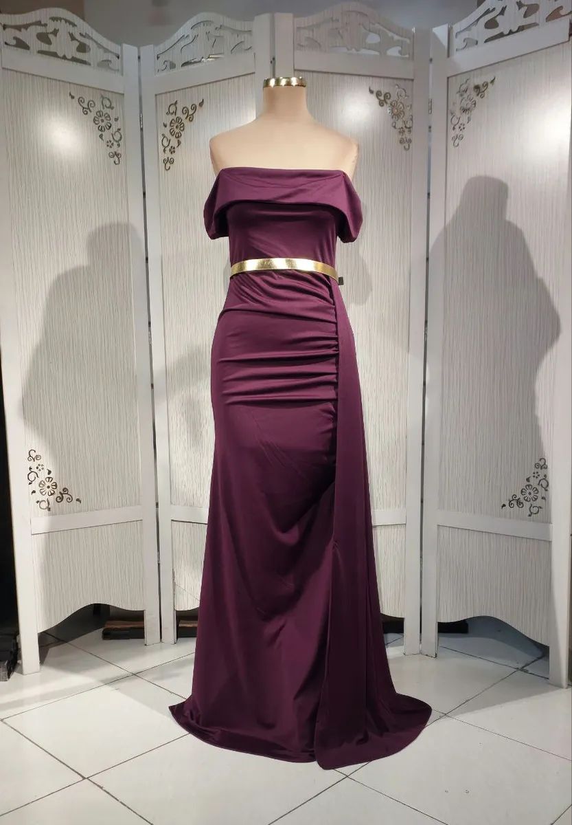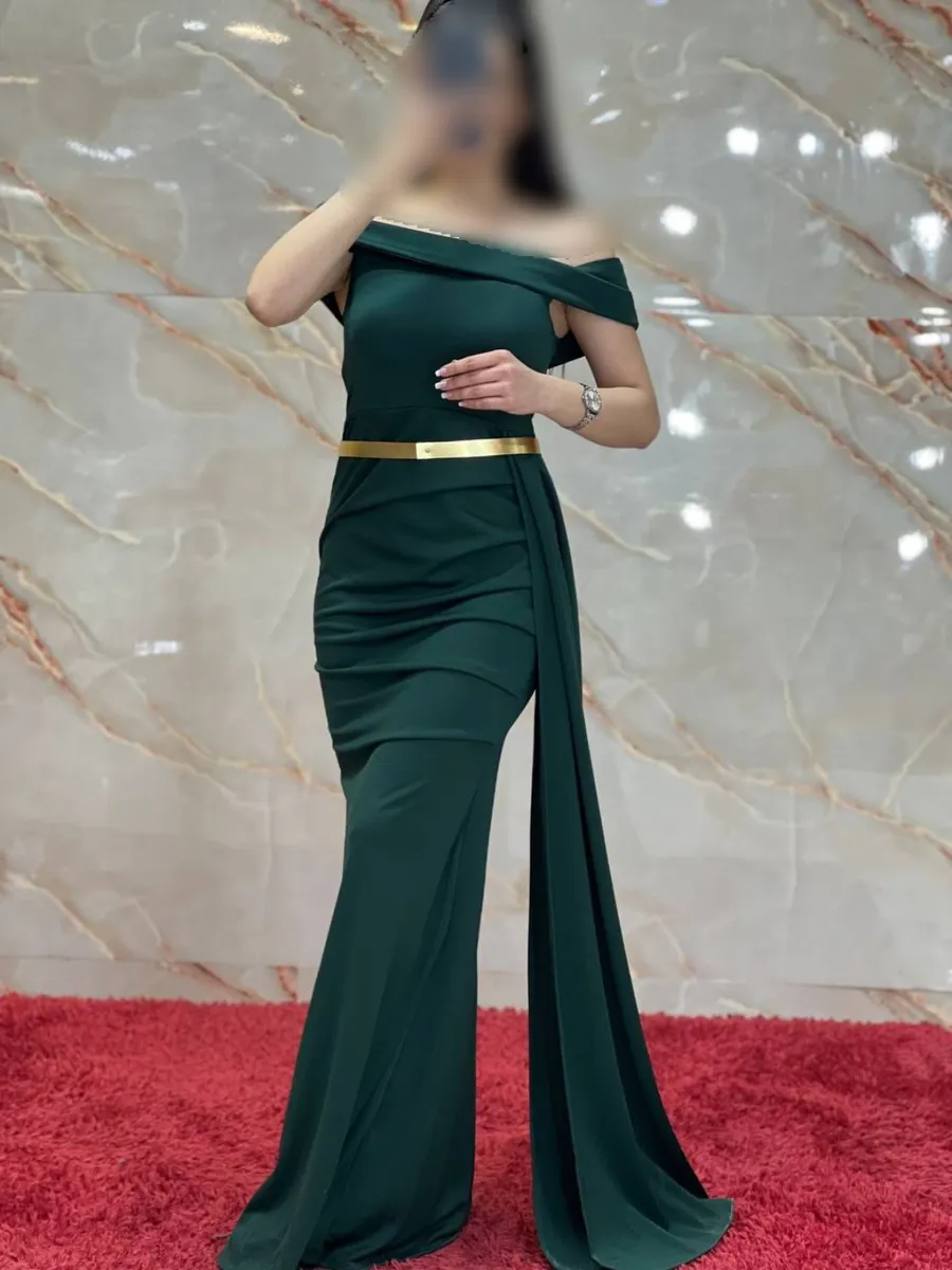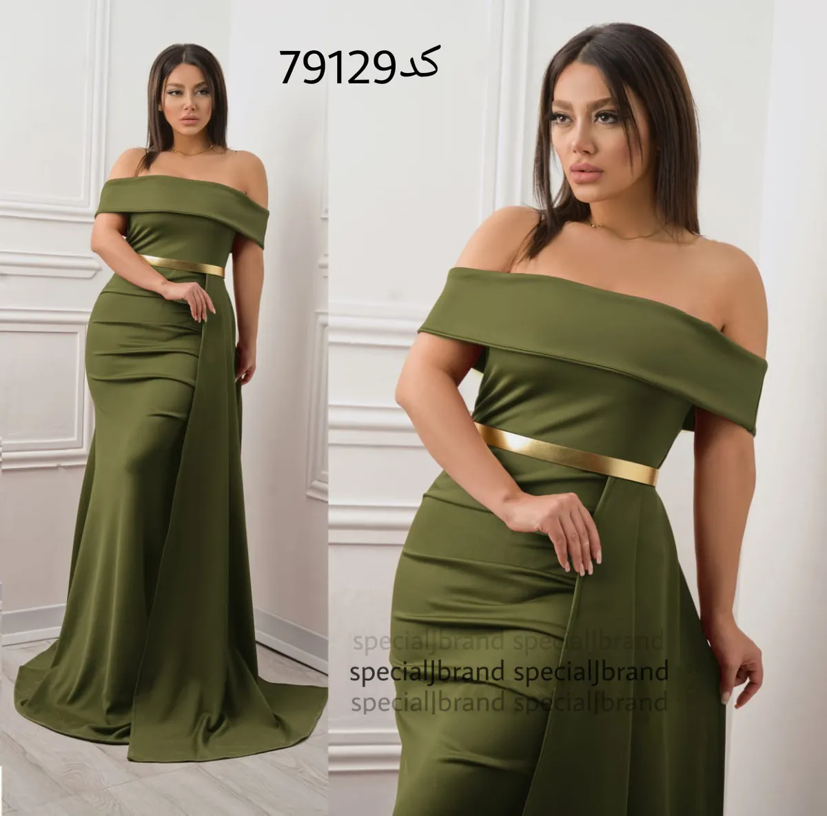 جنس : کرپ غواصی(قد150)(دنباله از پهلو به کار وصله)(کمربند طلایی دار)(پشت زیپ داره)