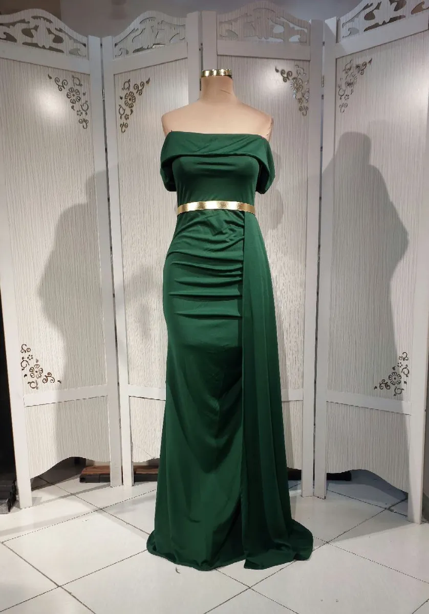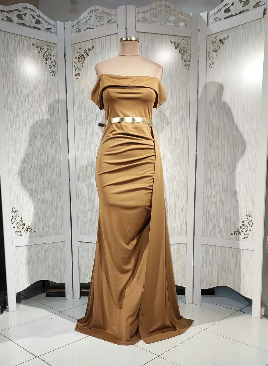 * **کمربند طلایی براق:** **کمربند طلایی** تعبیه شده، نه تنها به زیبایی و جلوه پیراهن میافزاید، بلکه نقطه کانونی ایجاد کرده و به خوشفرمتر دیده شدن اندام کمک شایانی میکند. این جزئیات، درخشش و لوکس بودن را تضمین میکند.