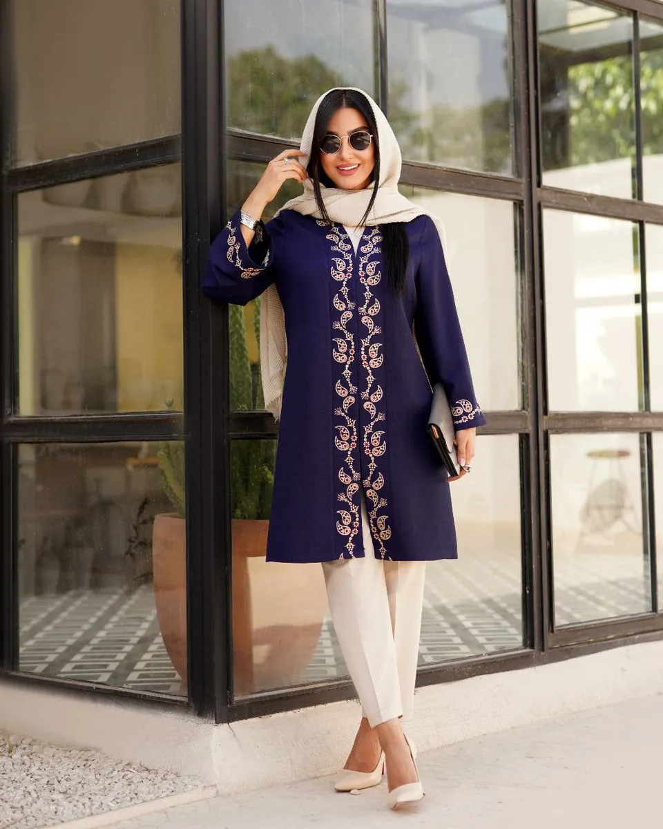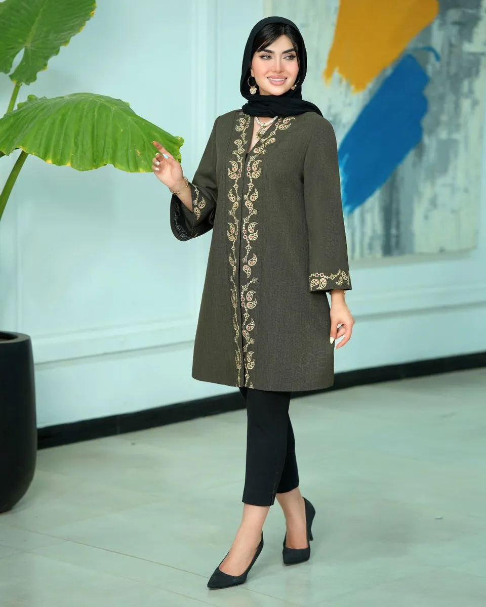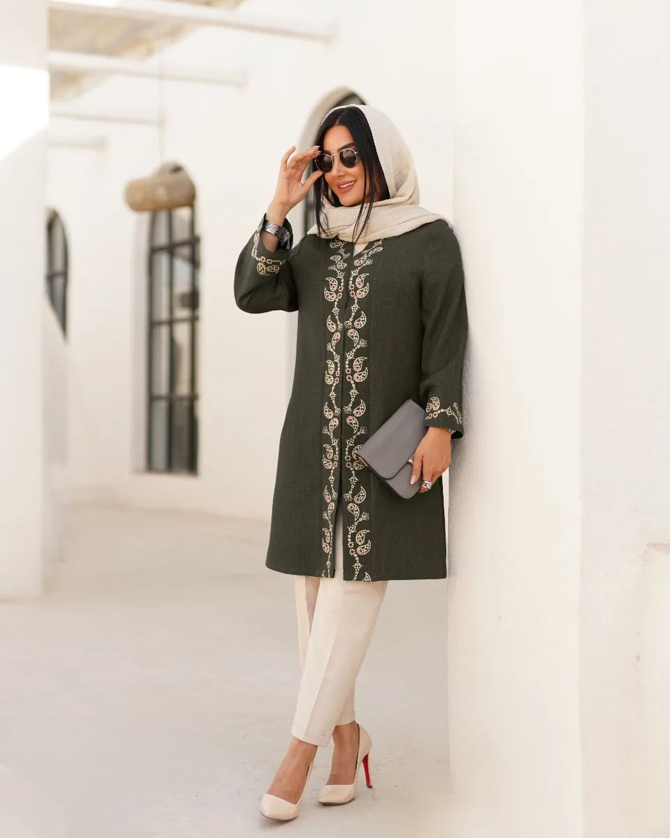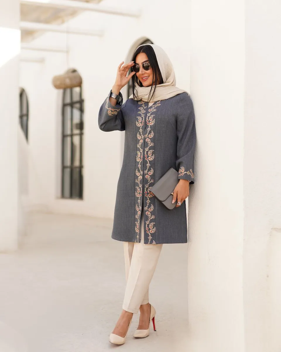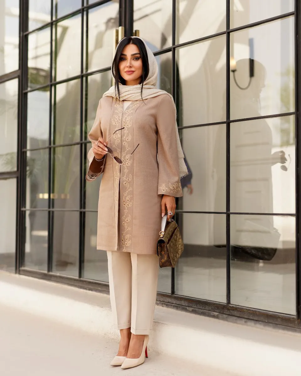 **نام مانتو: مانتو "سولماز" - جلوهای از شانتون لیپینگ و ظرافت گلدوزی**