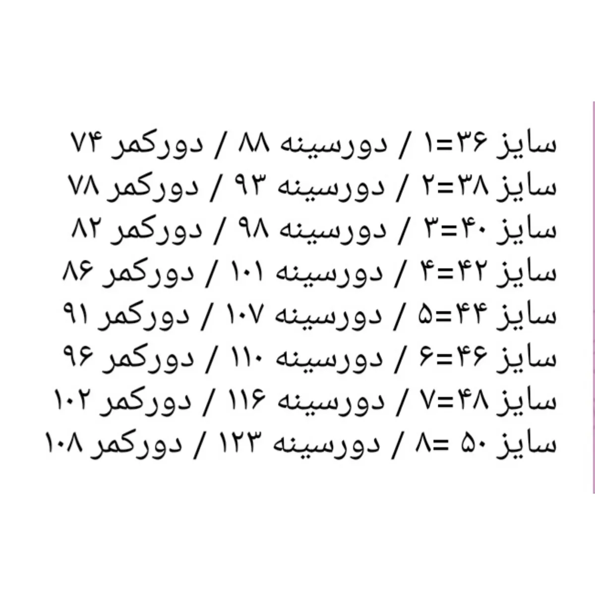 * **سایزبندی:** 36 تا 50 (مناسب برای سایزهای مختلف، از جمله سایز بزرگ)