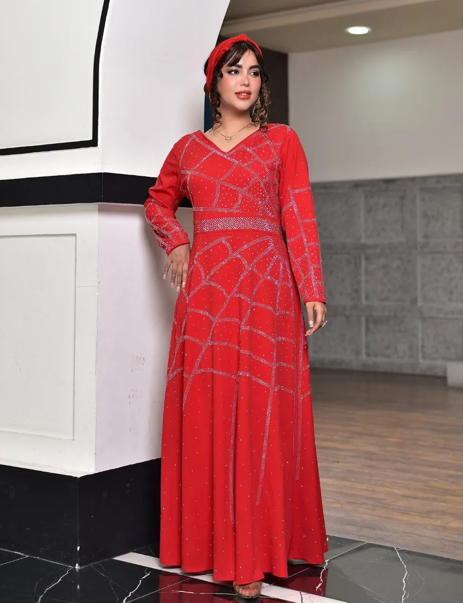 طراحی خیرهکننده: مدل بلند با جزئیات تمام نگین، ظاهری باشکوه و مجلسی را ایجاد میکند.