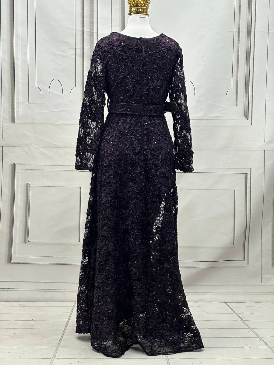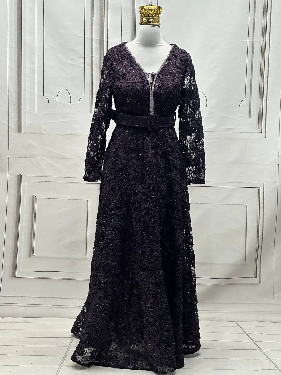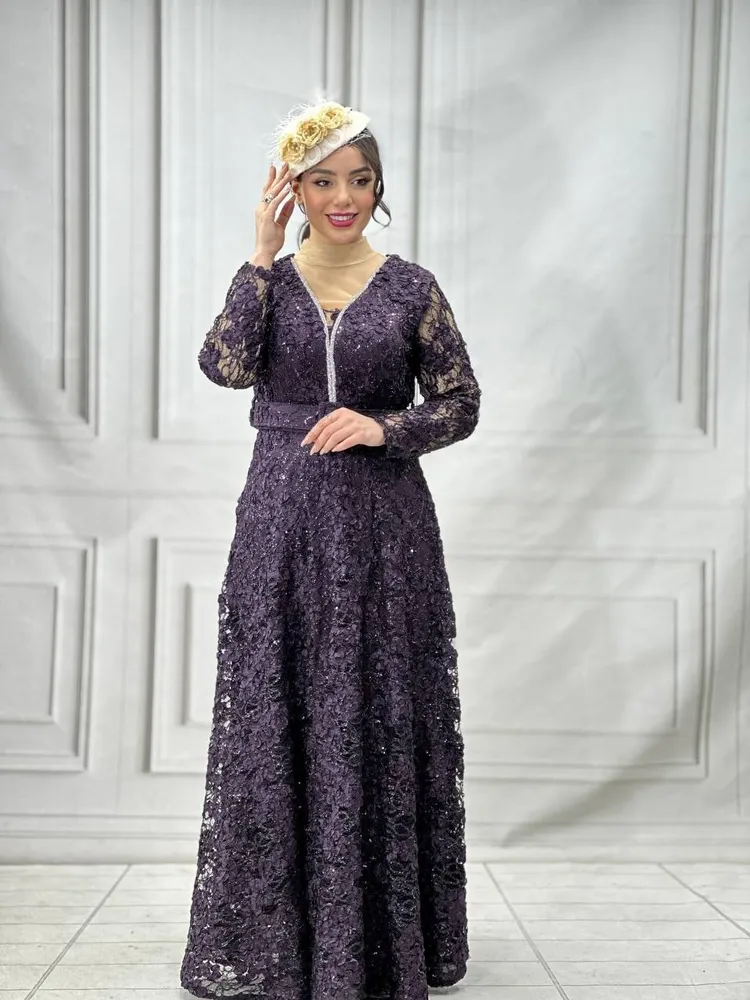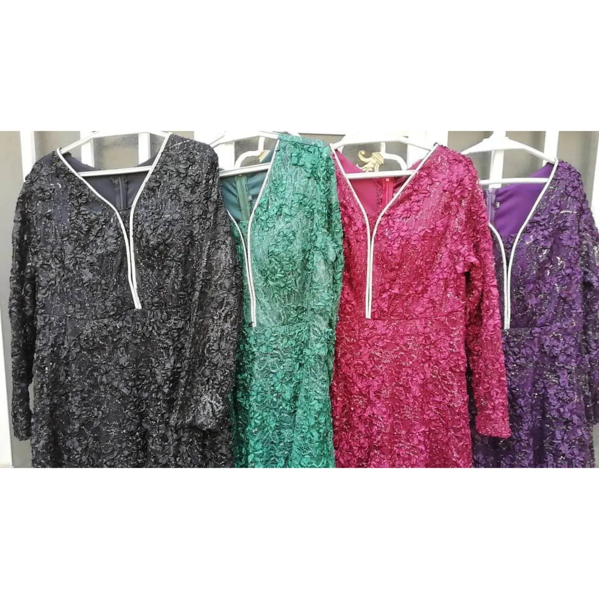 **عنوان:** لباس مجلسی "گوهر" - گیپور گل برجسته، سایز 40 تا 54 - ارسال رایگان