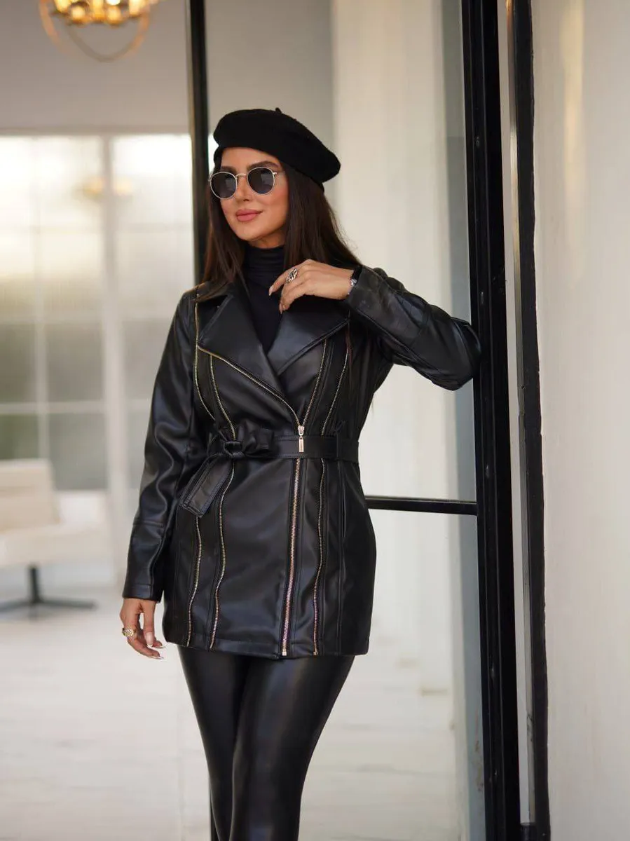 **عنوان:** کاپشن چرم زنانه "پناه" - پاییزه شیک مجلسی - داخل کرک - سایزبزرگ