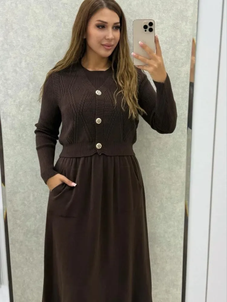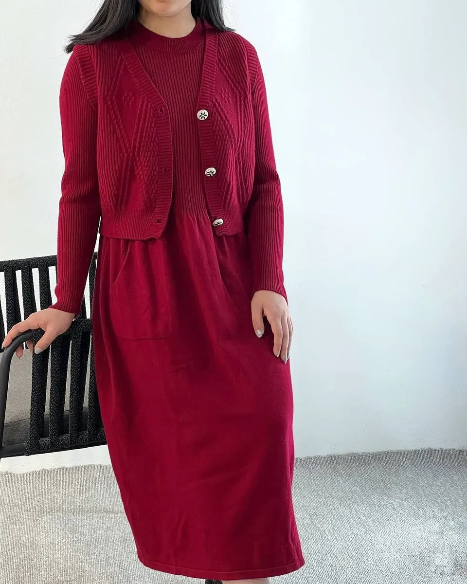 طراحی دو تیکه هماهنگ: پیراهن ساده و شیک در کنار ژیله بافت فانتزی برای ظاهری خاص