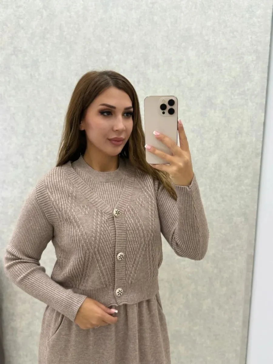 با این ست پاییزه دو تیکه بینظیر، استایل گرم، شیک و خاص خود را در فصلهای سرد کامل کنید. ترکیب پیراهن راحت و ژیله بافت کشمیر گپ اصلی مدلی مدرن و دوستداشتنی را ایجاد کرده که هم در محیط کاری و هم در دورهمیهای دوستانه جلوهای متفاوت به شما میبخشد.
