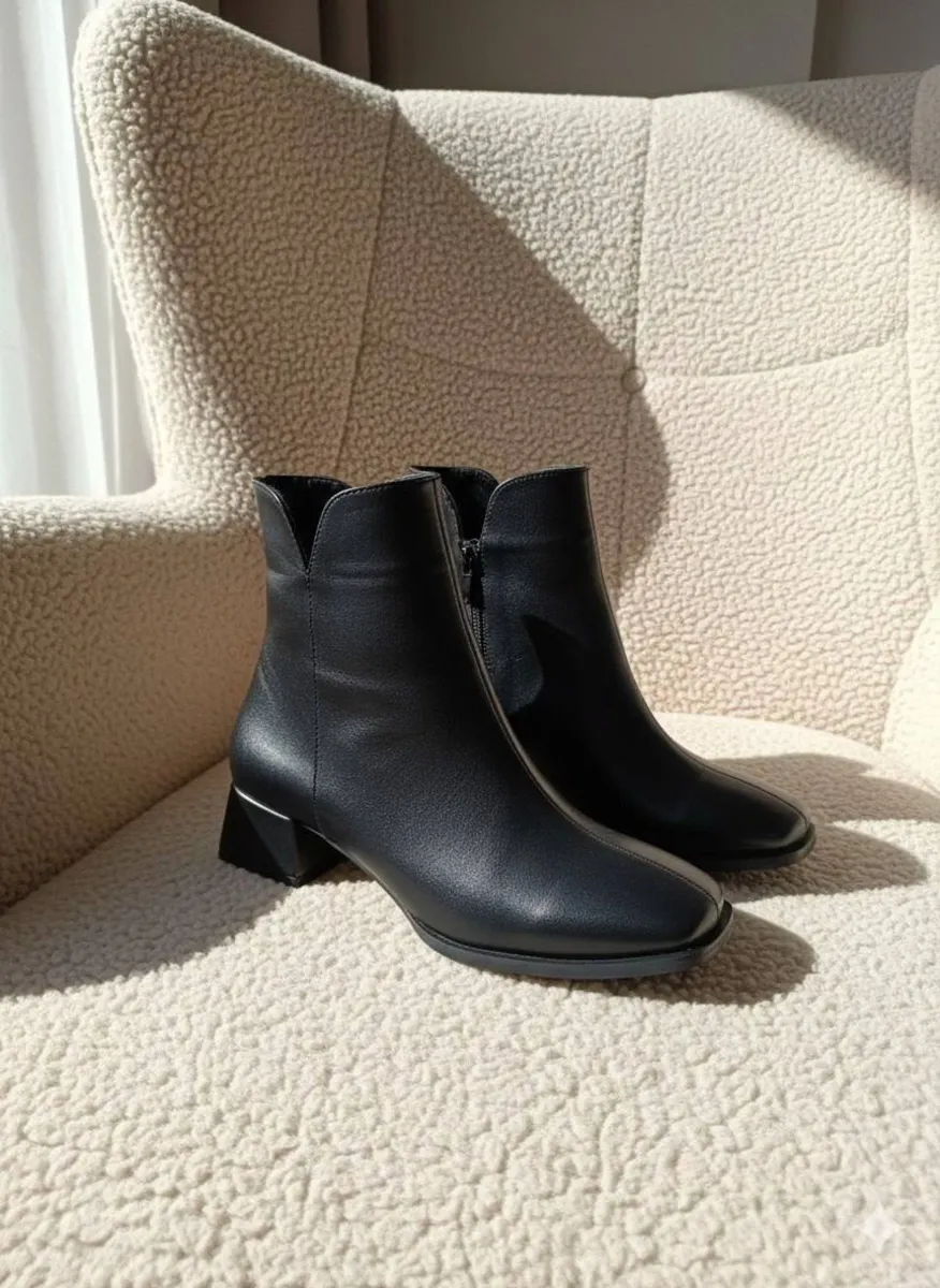 با نیمبوت زنانه مشکی کلاسیک، ترکیب بینقصی از ظرافت، راحتی و کاربردی بودن را تجربه کنید. این نیمبوت شیک با طراحی مینیمال و فرم استاندارد، انتخابی عالی برای حضور در محیطهای رسمی و موقعیتهای روزمره است.