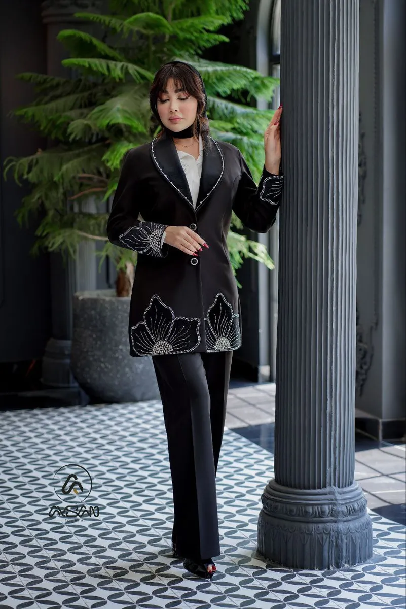 کت و شلوار مجلسی رما انتخابی بیرقیب برای بانوانی است که به دنبال استایل رسمی، شیک و کیفیت بینظیر هستند. این ست با استفاده از کرپ مازراتی 310 گرمی مرغوب و آستر ژاپنی باکیفیت، راحتی فوقالعاده در کنار ظاهری مجلسی ارائه میدهد.