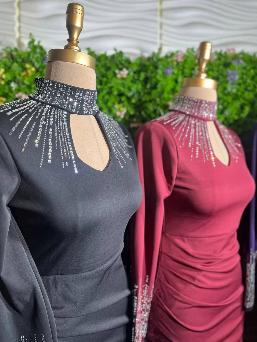 لباس مجلسی آرتینا با طراحی فاخر و نگینکاری درخشان، انتخابی بیرقیب برای مجالس عروسی، نامزدی و مراسم لوکس است. این پیراهن از کرپ غواصی درجه یک همراه با نگینهای حرارتی ریز، درشت و آیینهای ساخته شده که جلوه خیرهکنندهای را در نور ایجاد میکنند و بدون هیچ ریزشی دوام همیشگی دارند.